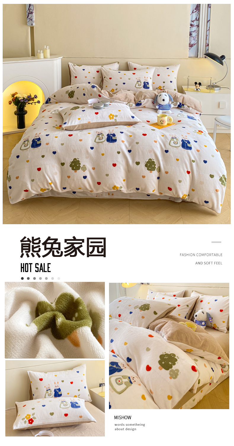 (总)斯卡诺家纺 2025小清新加厚高克重牛奶绒四件套网红直播爆款,樱桃,北欧兔,贝拉,兰心小鸭,萌萌兔,趣味草莓,爱心花朵,爱心灰,爱心熊粉,彩虹,黑白荷花,花边动物,快乐小熊,萝卜,绿野仙踪,魅影,萌萌狗,迷你小熊,牡丹花,泥点子母,气球小象,水果,蝴蝶结,咖爱心,恐龙世界,花妖