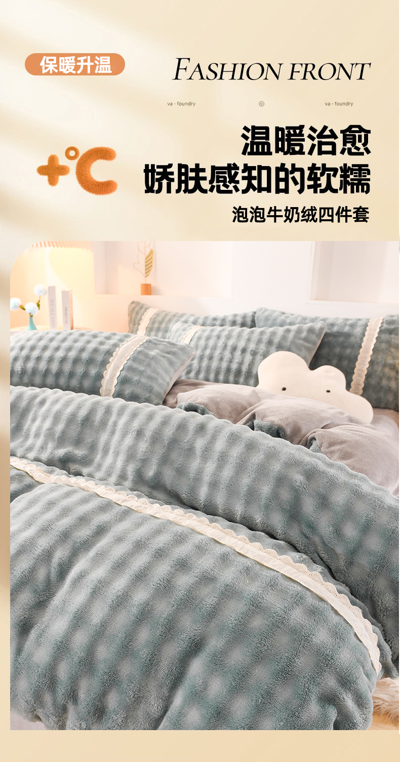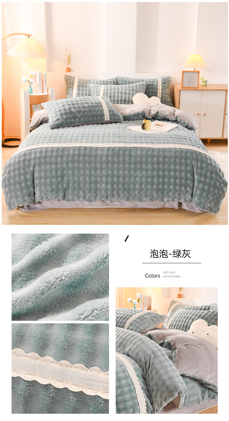 当前位置: 91家纺网 > 商品网购 > 床品套件 > 四件套 > 牛奶绒四件套 > 米瑞娜 2025新款泡泡绒四件套 泡泡-绿灰