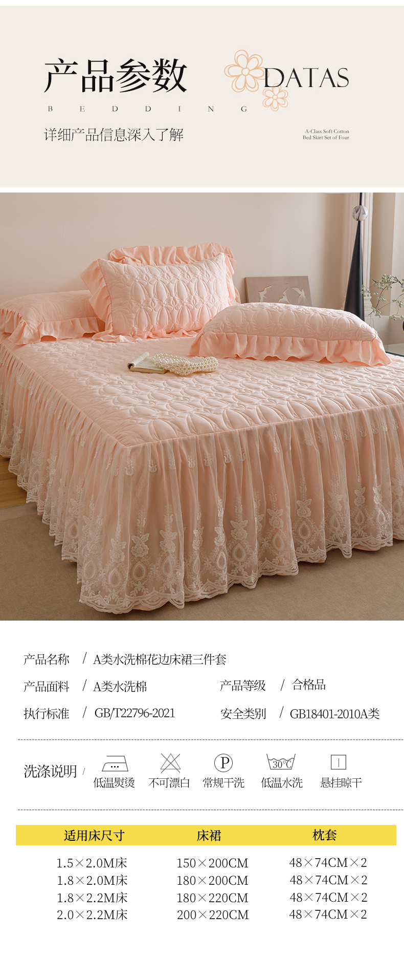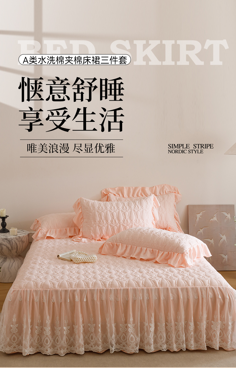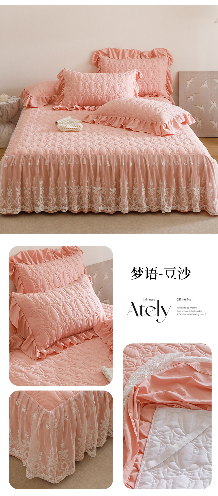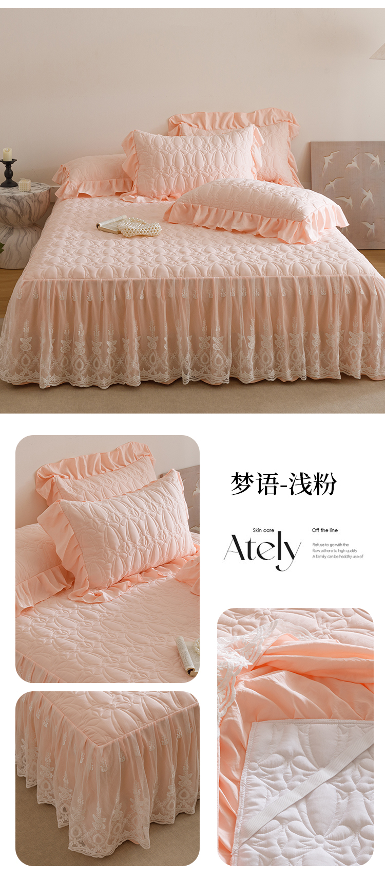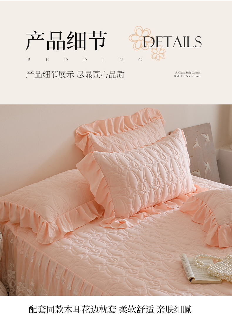 当前位置: 91家纺网 > 商品网购 > 床品套件 > 四件套 > 牛奶绒四件套 > 好儿喜家纺 2025新款A类水洗棉床裙三件套-梦语系列 梦语-浅粉