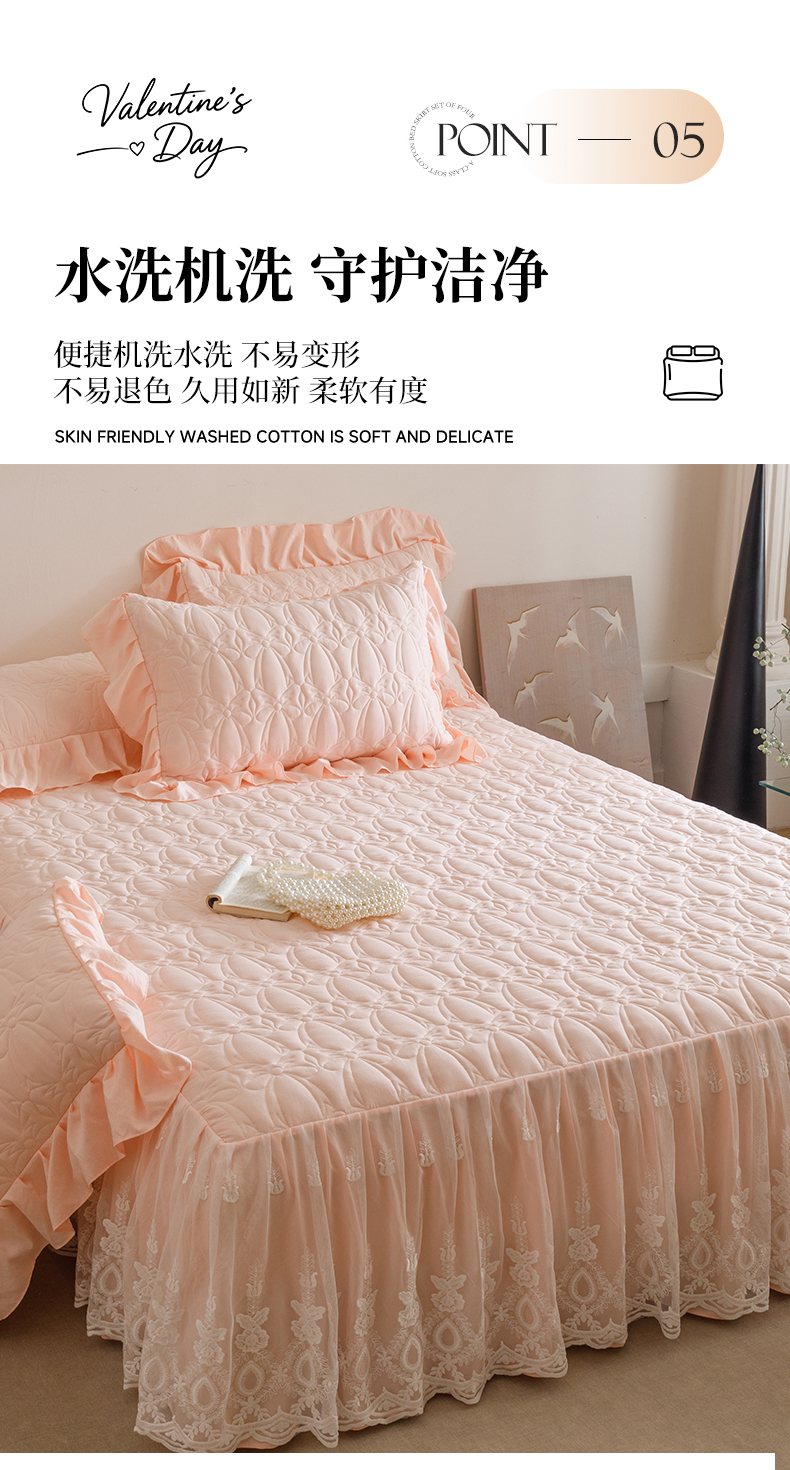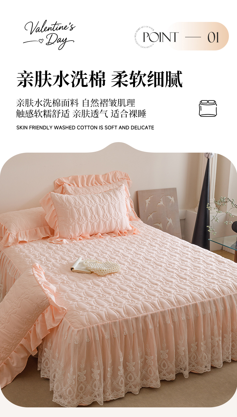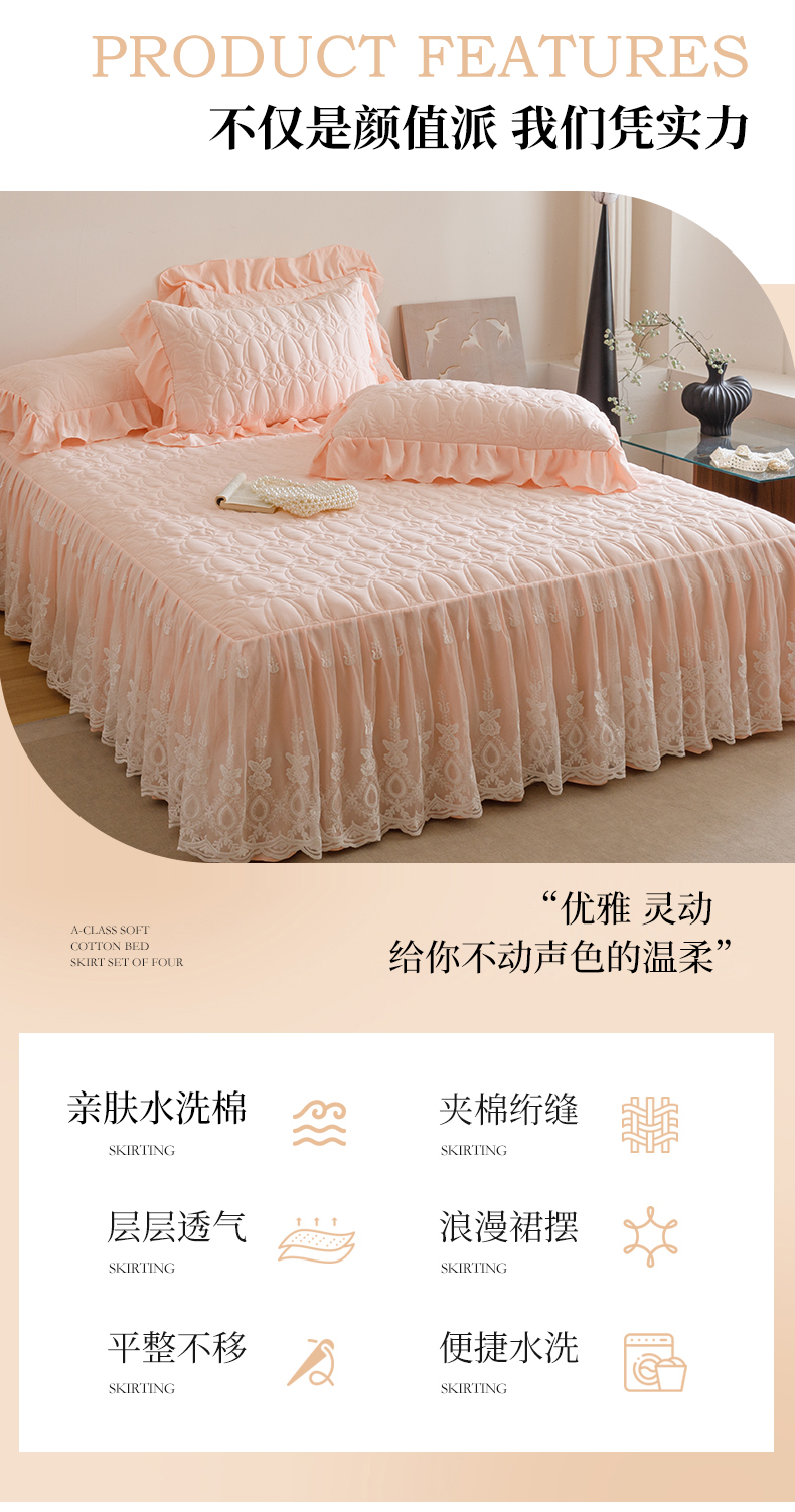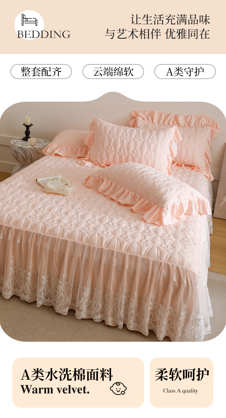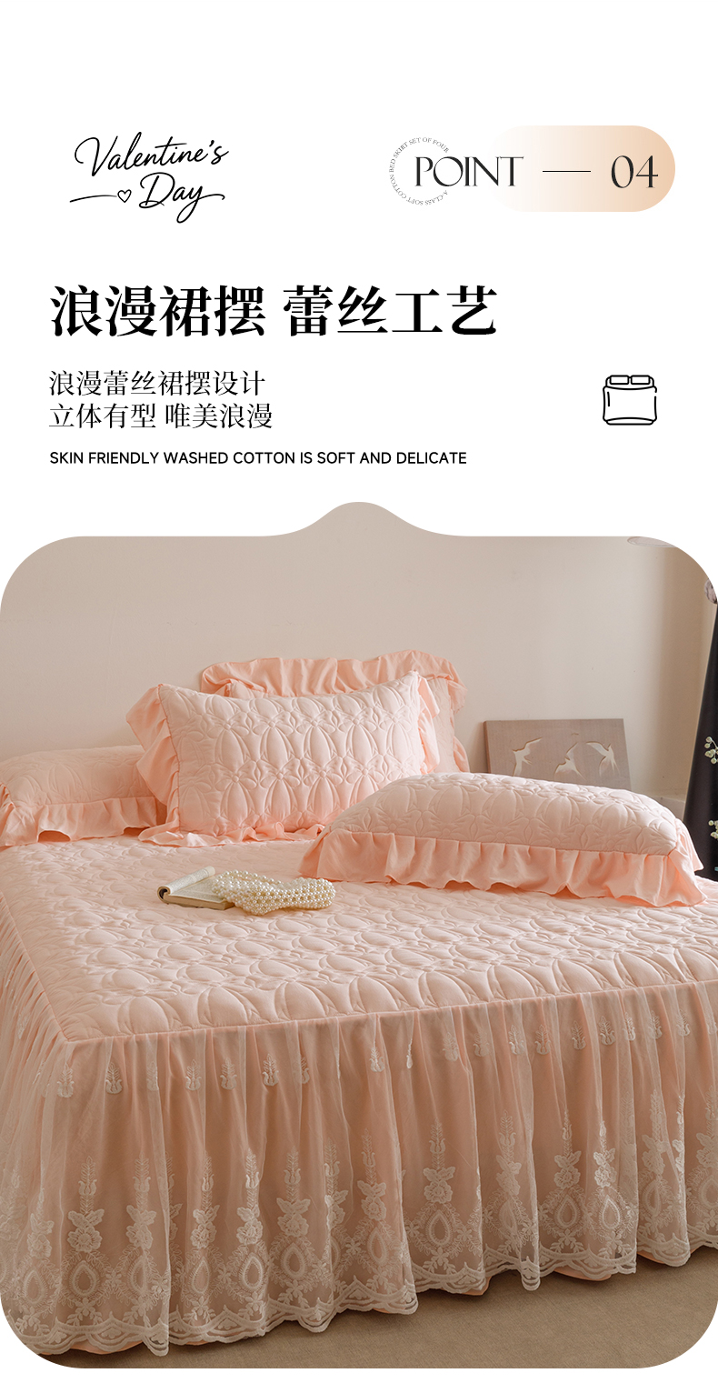 当前位置: 91家纺网 > 商品网购 > 床品套件 > 四件套 > 牛奶绒四件套 > 好儿喜家纺 2025新款A类水洗棉床裙三件套-梦语系列 梦语-浅粉