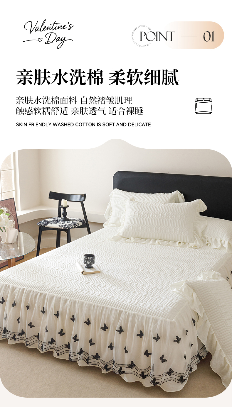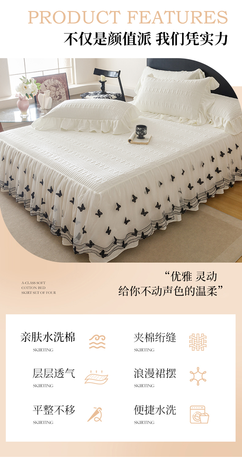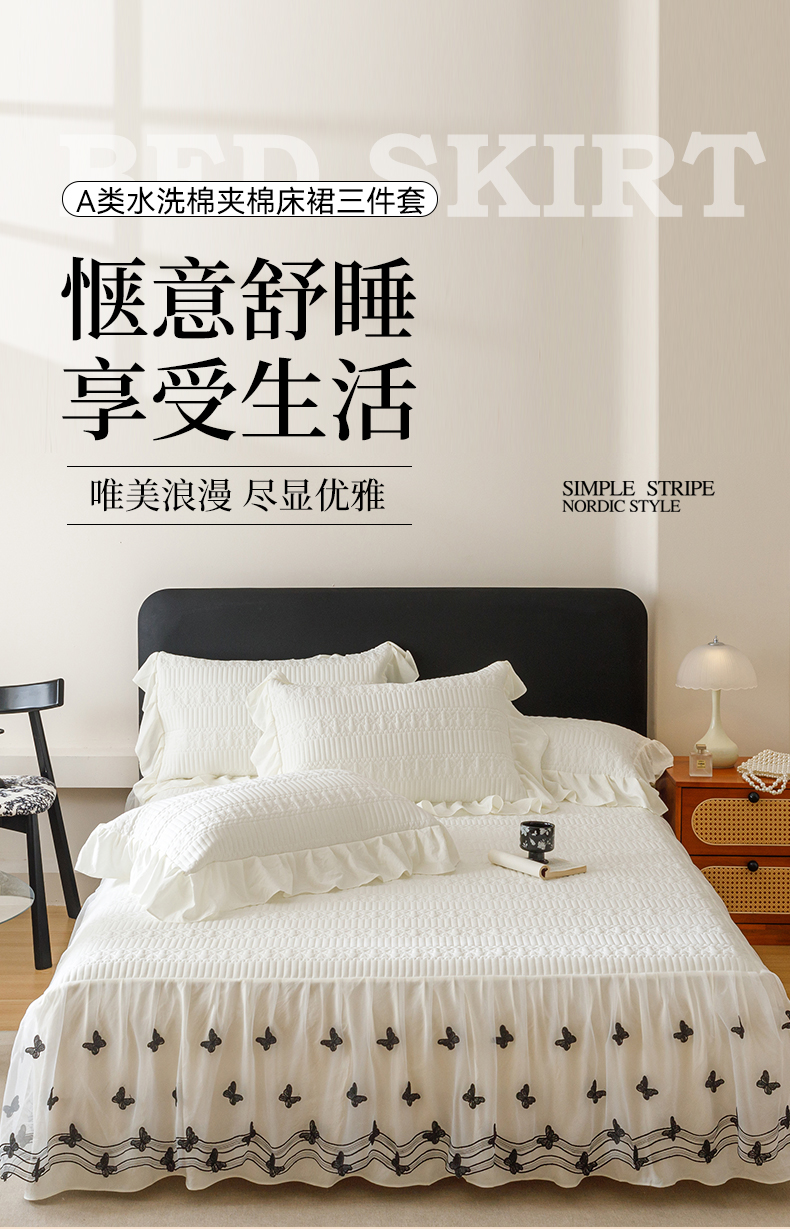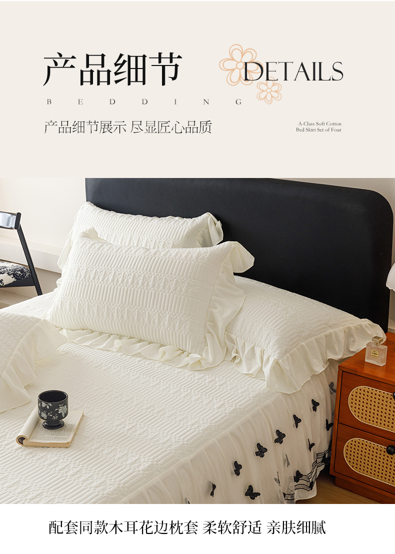 当前位置: 91家纺网 > 商品网购 > 床品套件 > 四件套 > 牛奶绒四件套 > 好儿喜家纺 2025新款A类水洗棉床裙三件套-凝香系列 凝香-奶白
