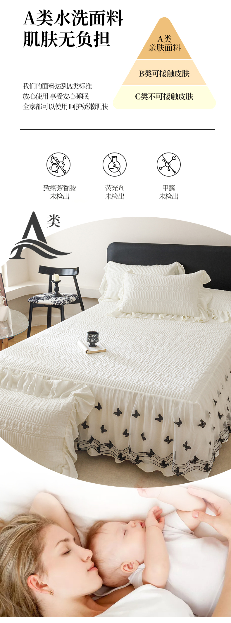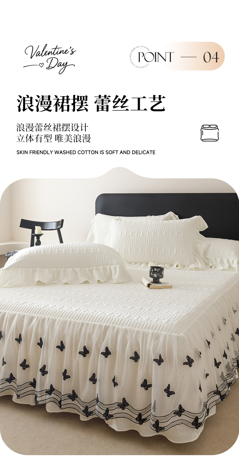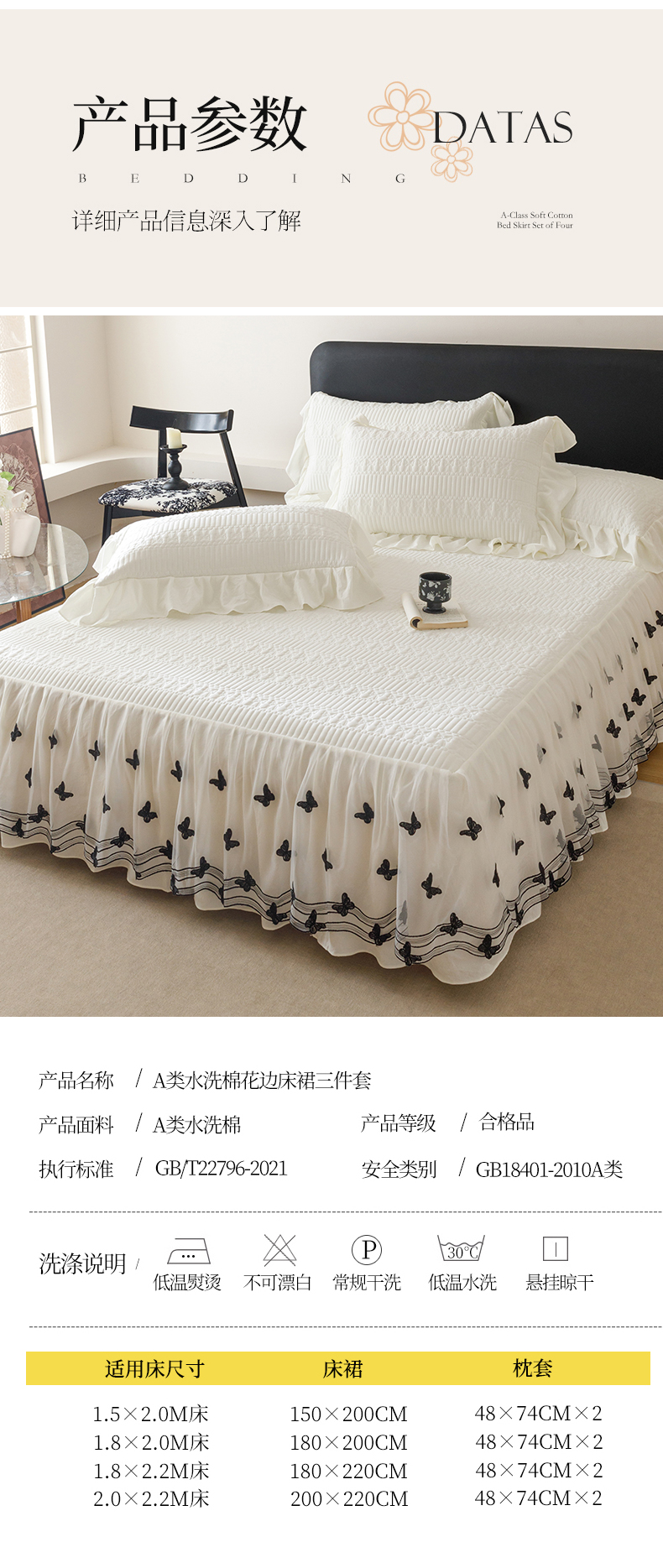 当前位置: 91家纺网 > 商品网购 > 床品套件 > 四件套 > 牛奶绒四件套 > 好儿喜家纺 2025新款A类水洗棉床裙三件套-凝香系列 凝香-奶白