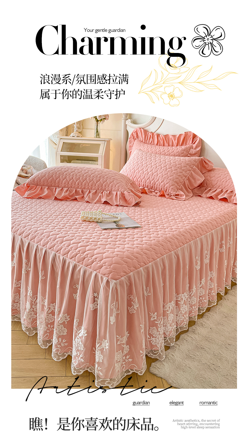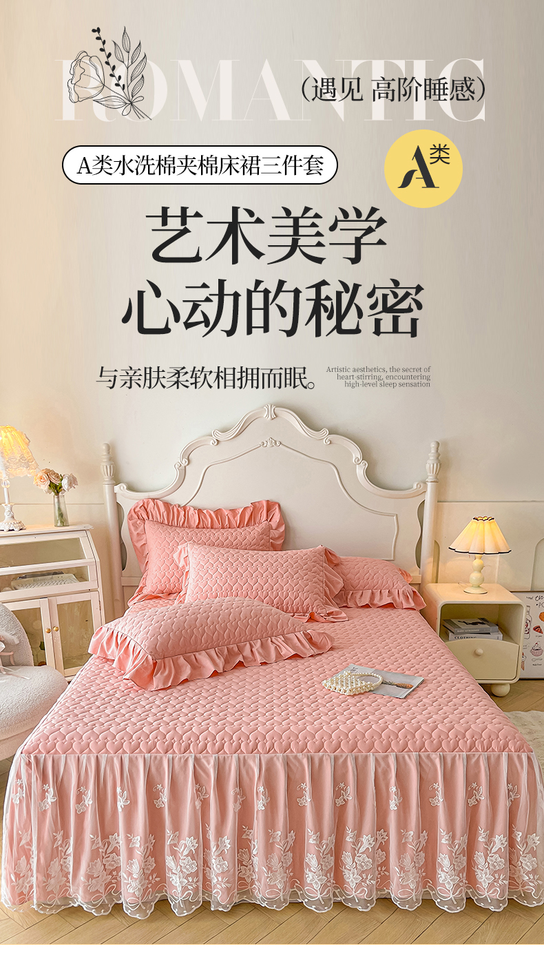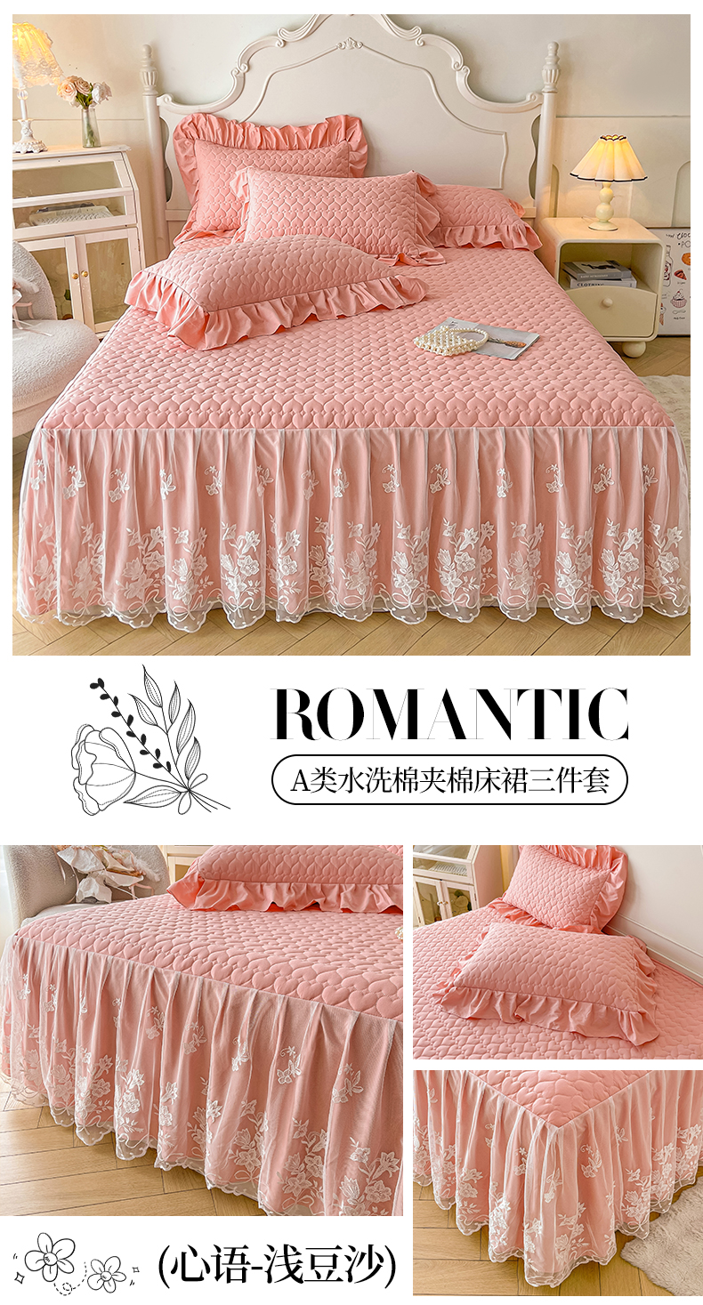 当前位置: 91家纺网 > 商品网购 > 床品套件 > 四件套 > 牛奶绒四件套 > 好儿喜家纺 2025新款A类水洗棉床裙三件套-心语系列 心语-浅豆沙