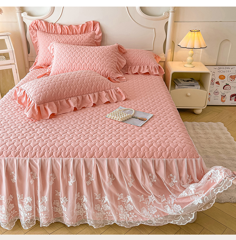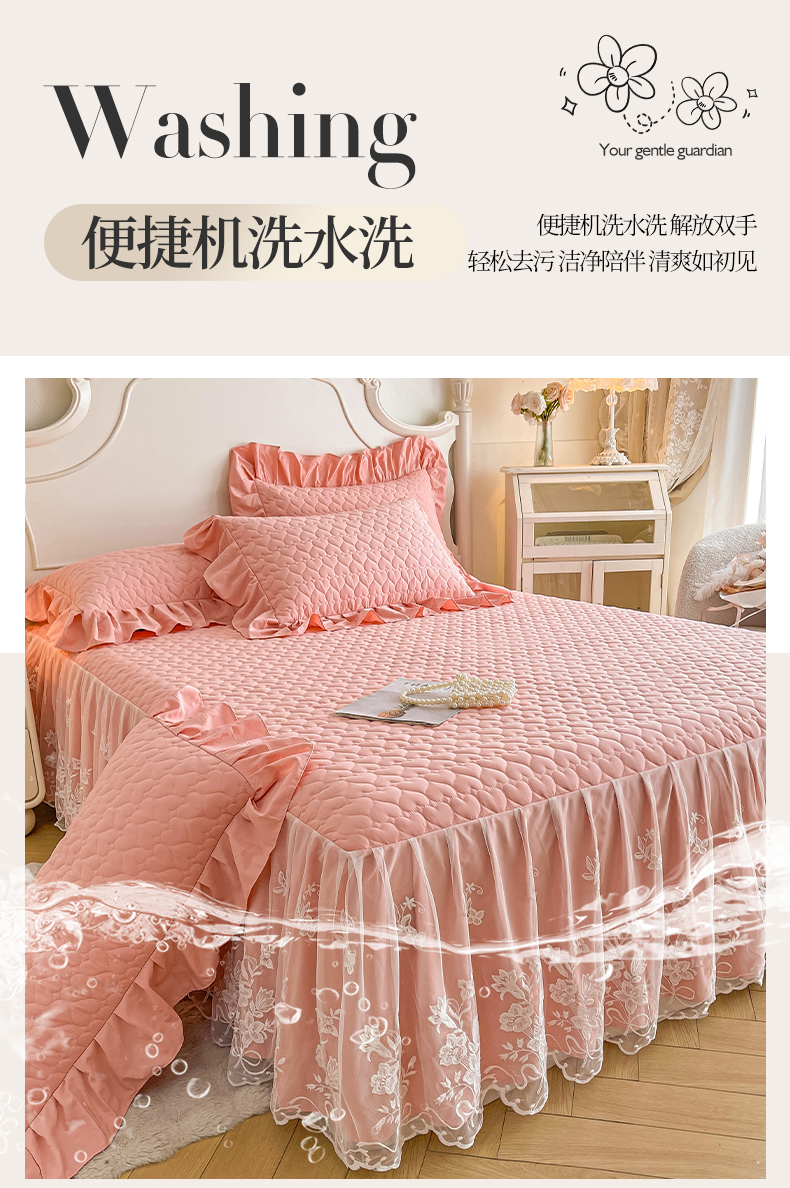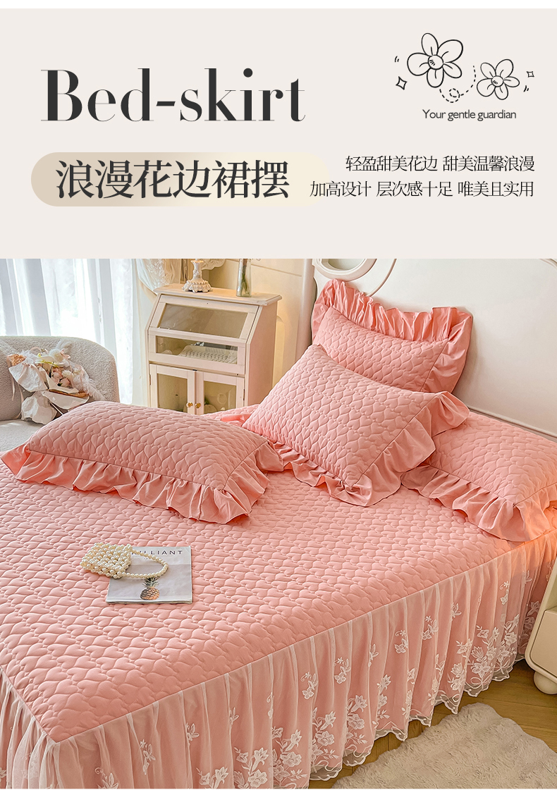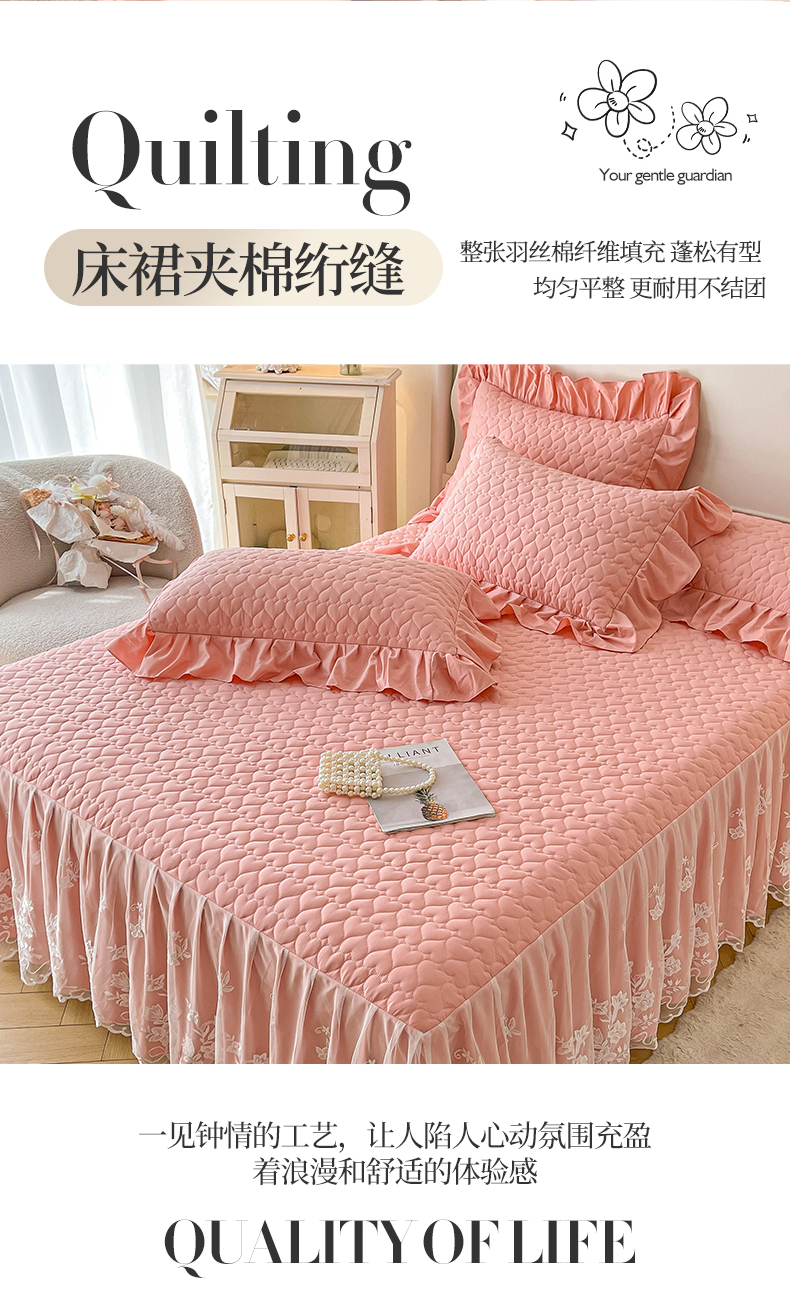当前位置: 91家纺网 > 商品网购 > 床品套件 > 四件套 > 牛奶绒四件套 > 好儿喜家纺 2025新款A类水洗棉床裙三件套-心语系列 心语-浅豆沙