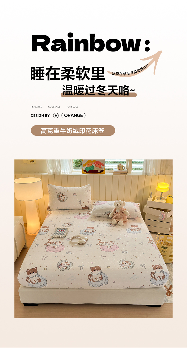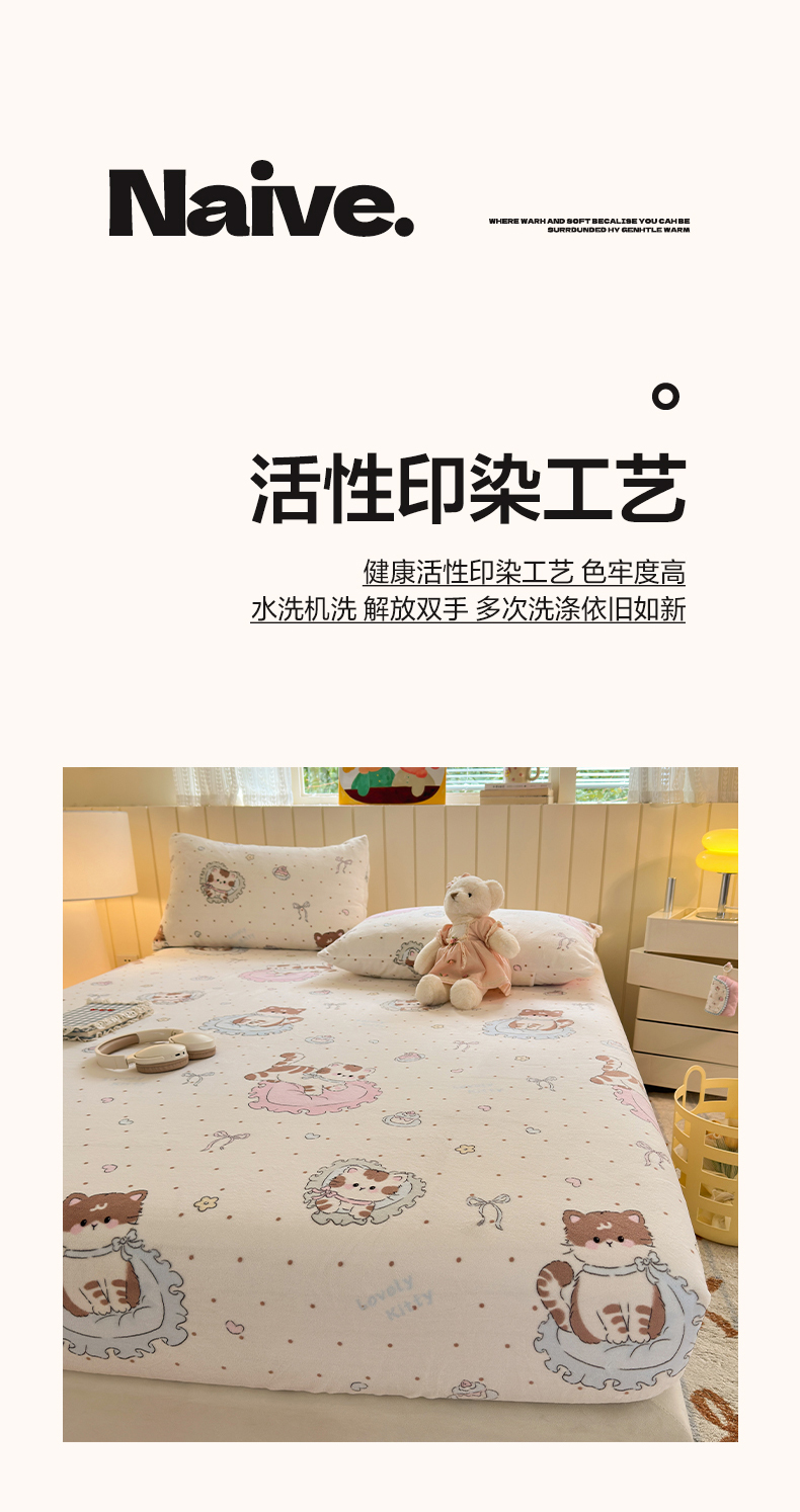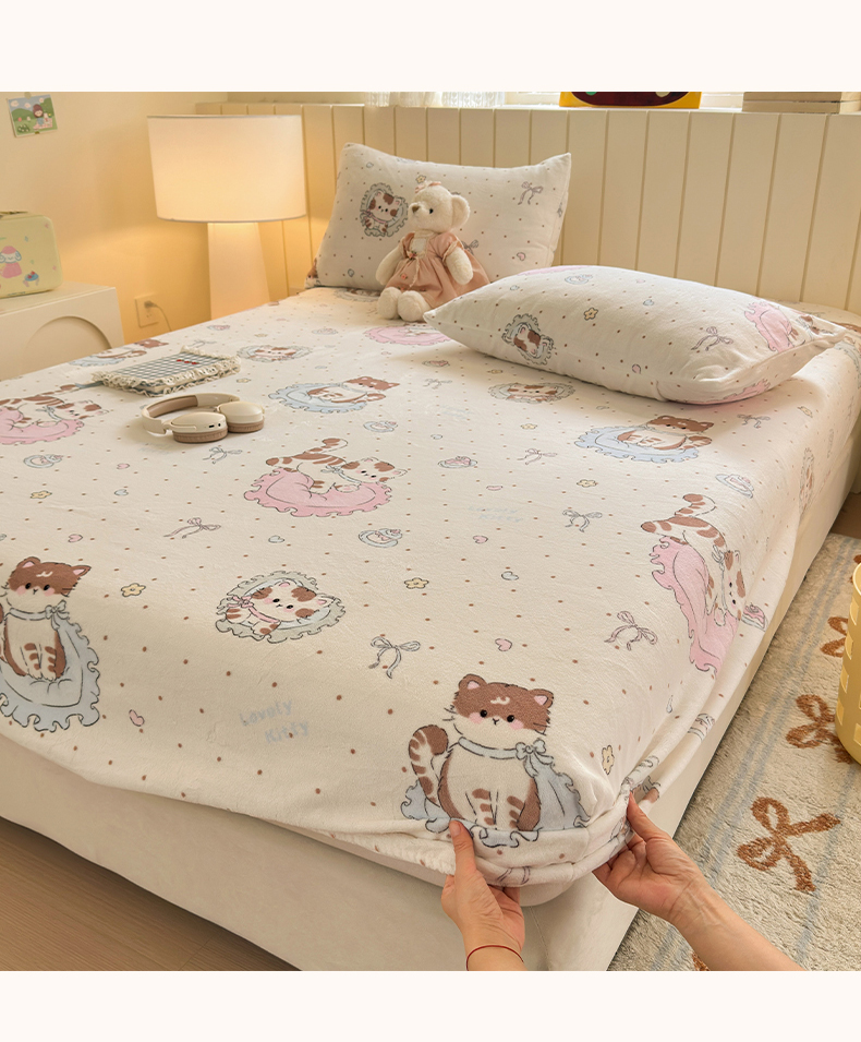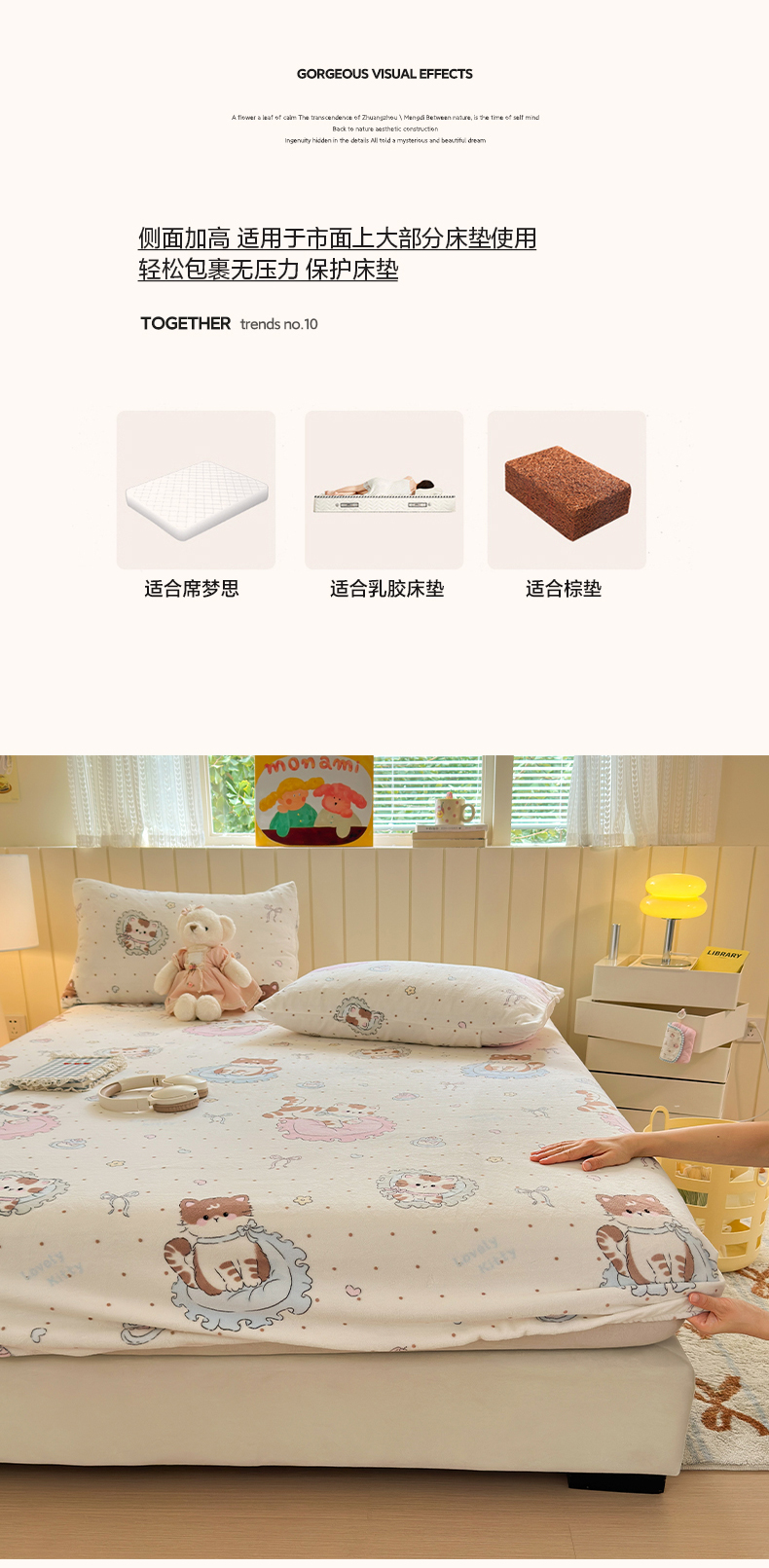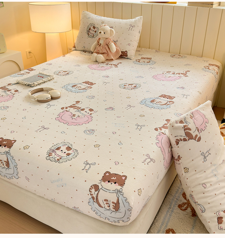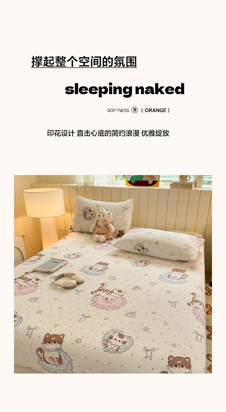 丽美人家纺 2025年牛奶绒小版印花床笠单床笠床笠单件 奶萌小猫