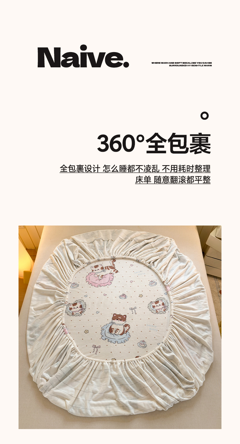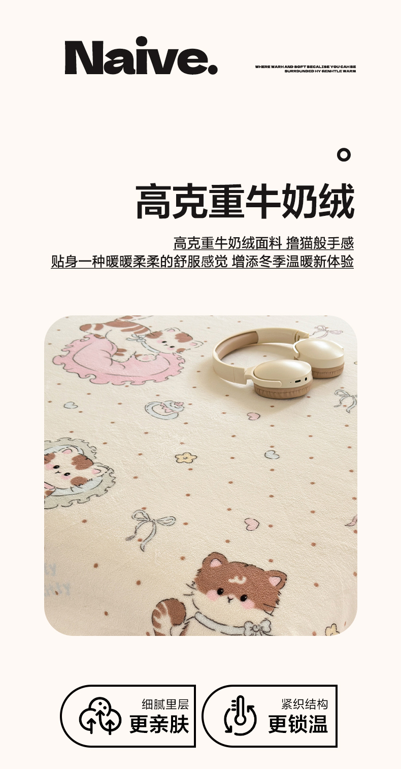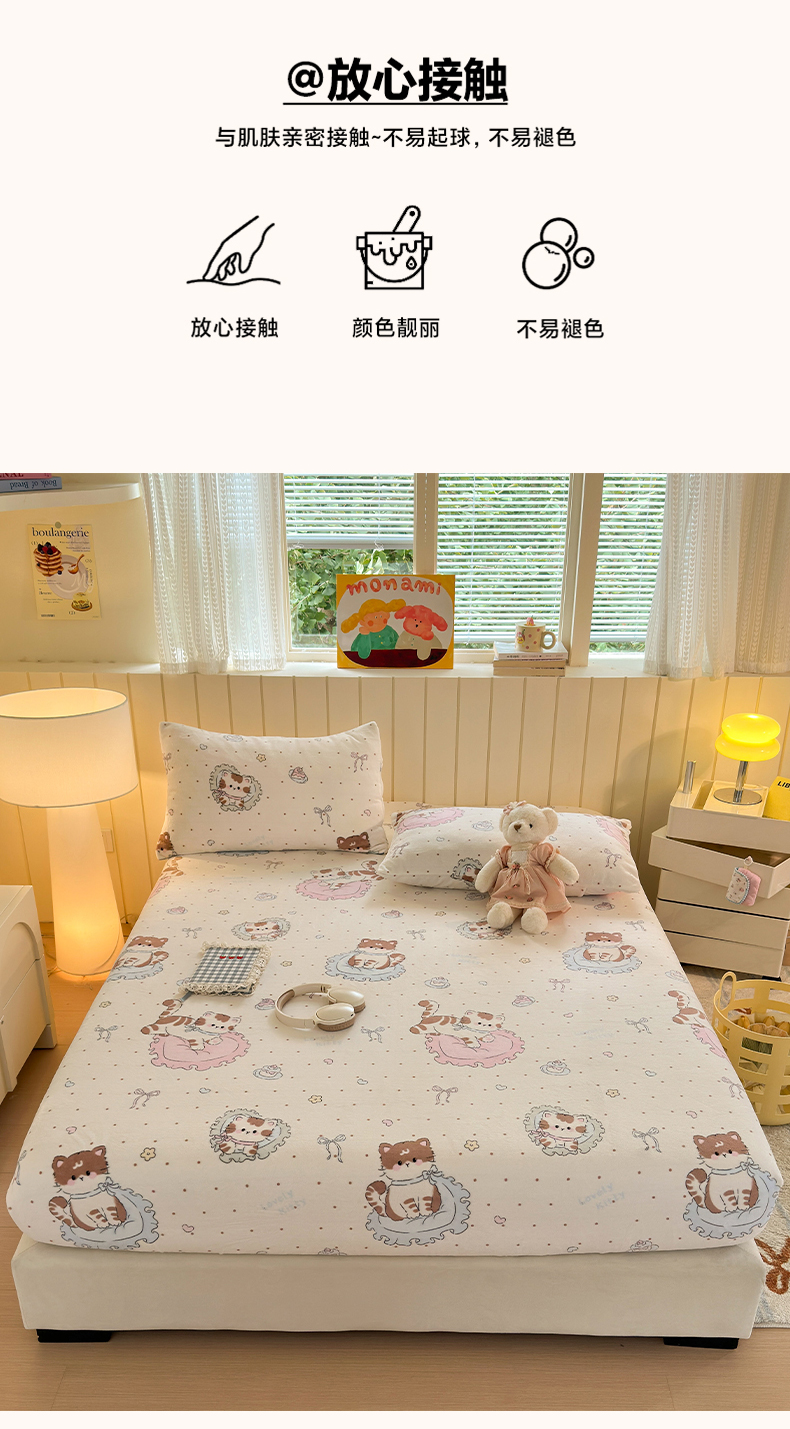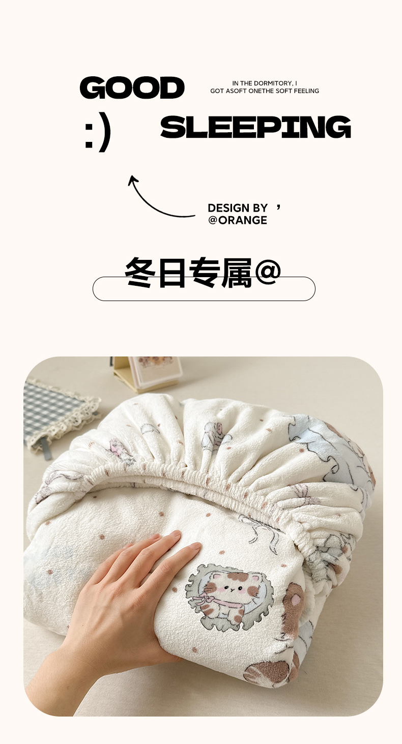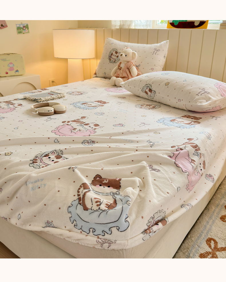 丽美人家纺 2025年牛奶绒小版印花床笠单床笠床笠单件 奶萌小猫