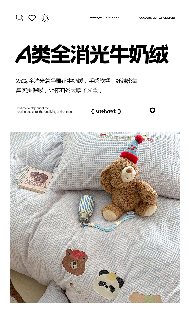 商品名称:暖生活 2025新款230g牛奶雕花绒单被套-三小只 组合