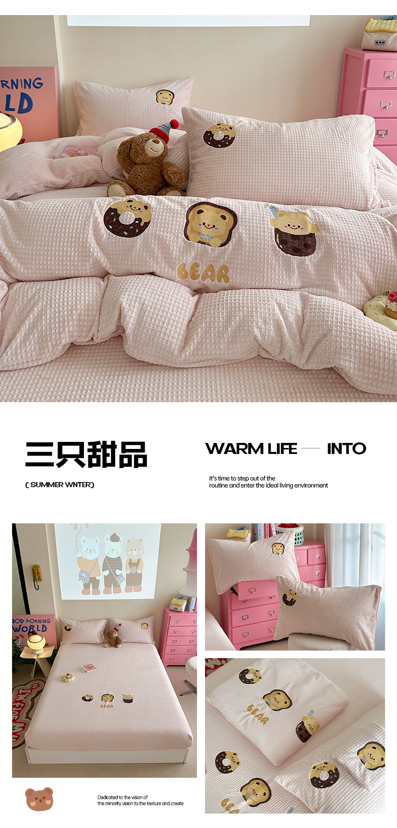 (总)暖生活 2025新款牛奶雕花绒单品枕套被套床笠-三小只系列,三只布布,三只头像,三只甜品,三只甜崽,组合,三只派对,三只秋千