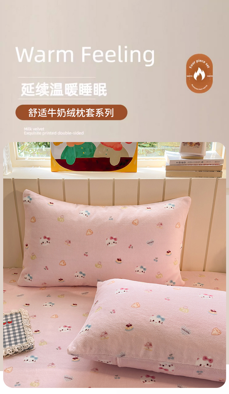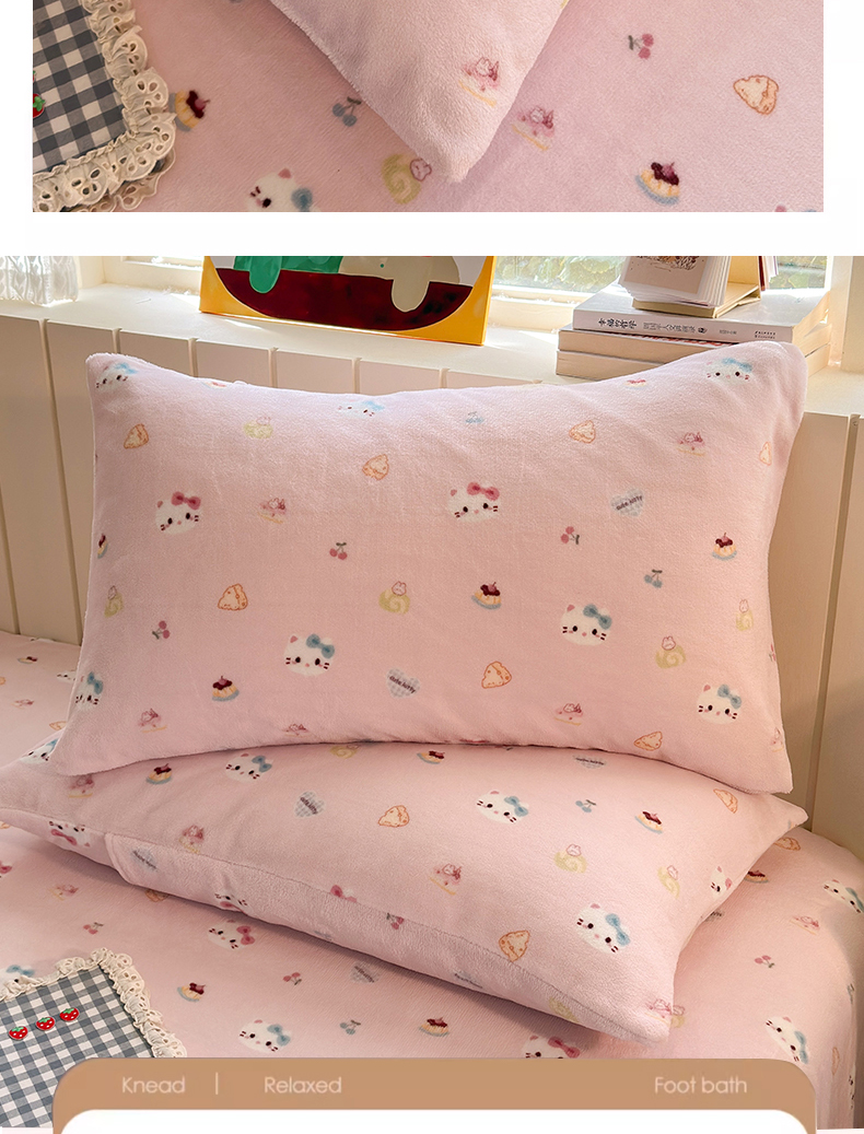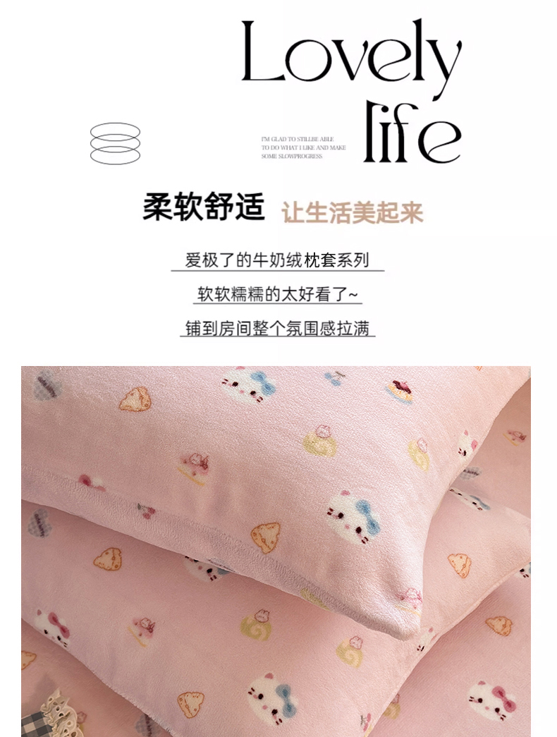 丽美人家纺 2025新款牛奶绒小版枕套 可爱小猫