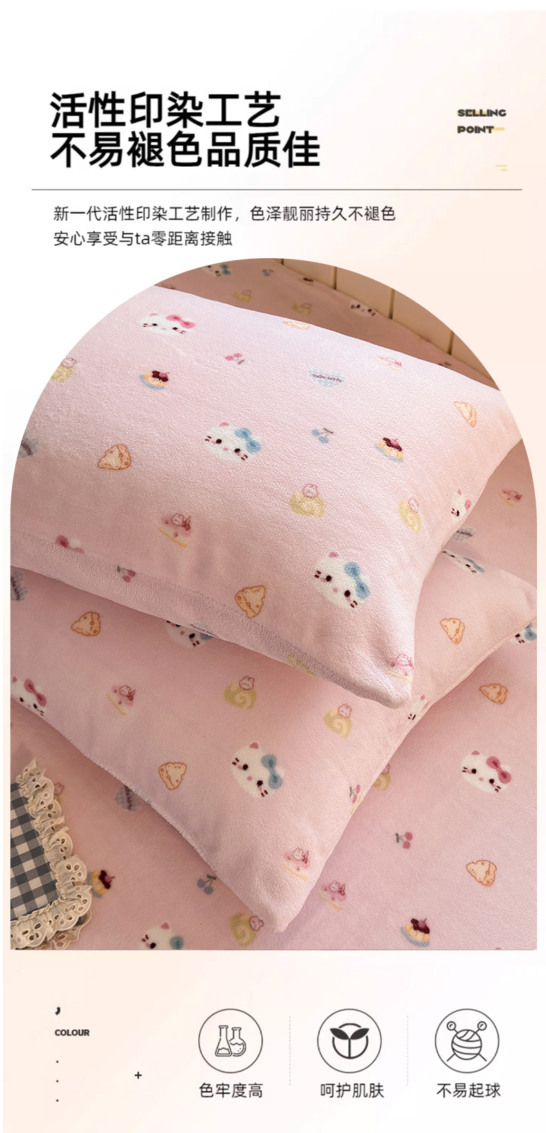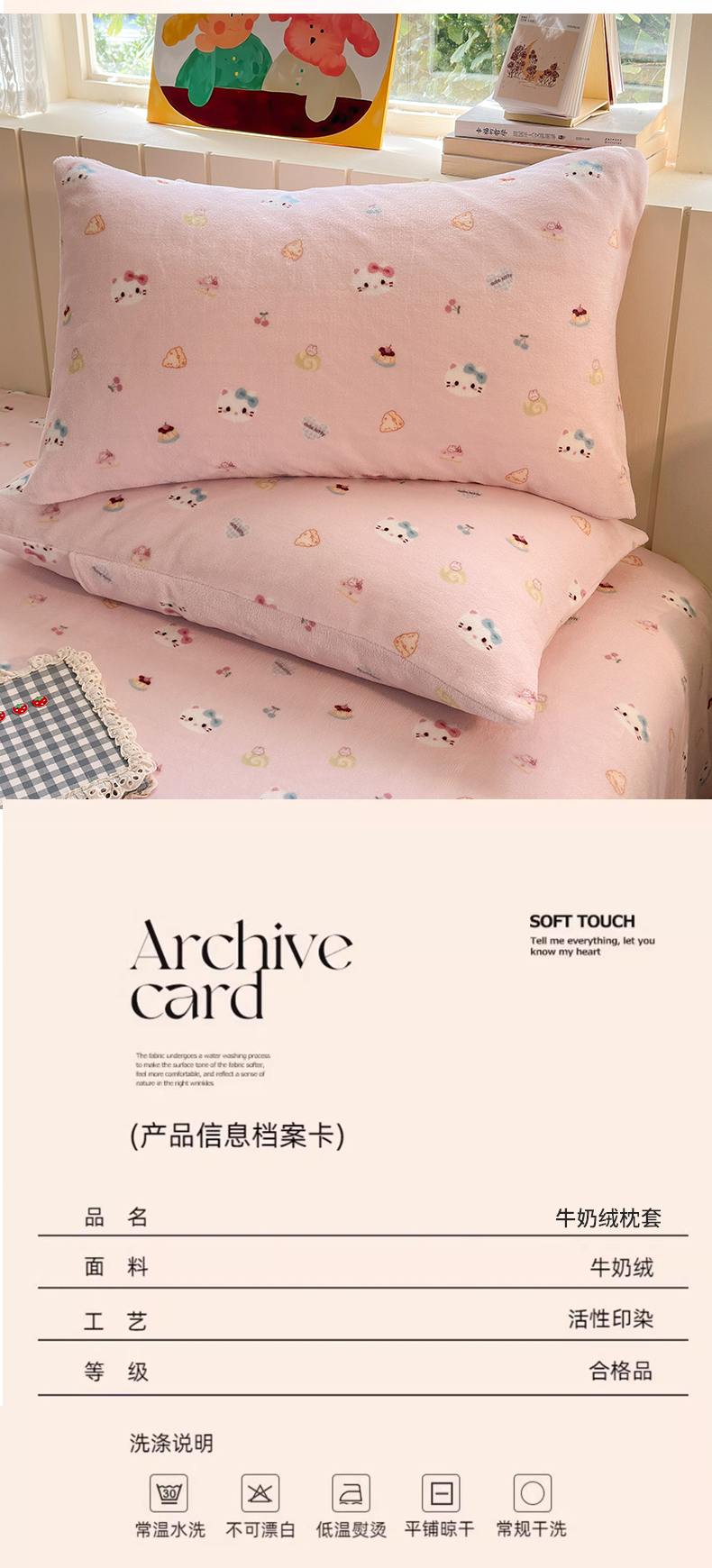商品名称:丽美人家纺 2025新款牛奶绒小版枕套 可爱小猫