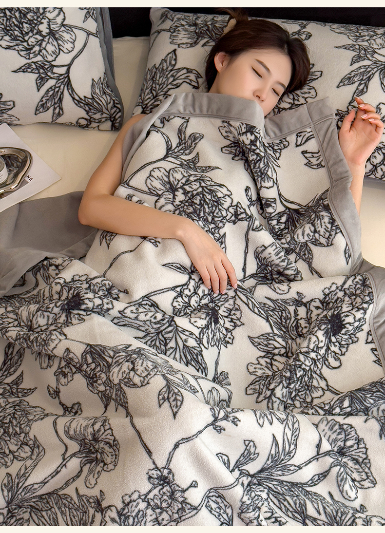 丝幔家纺 2025新款羊绵绒双层印花毛毯毯子 花田