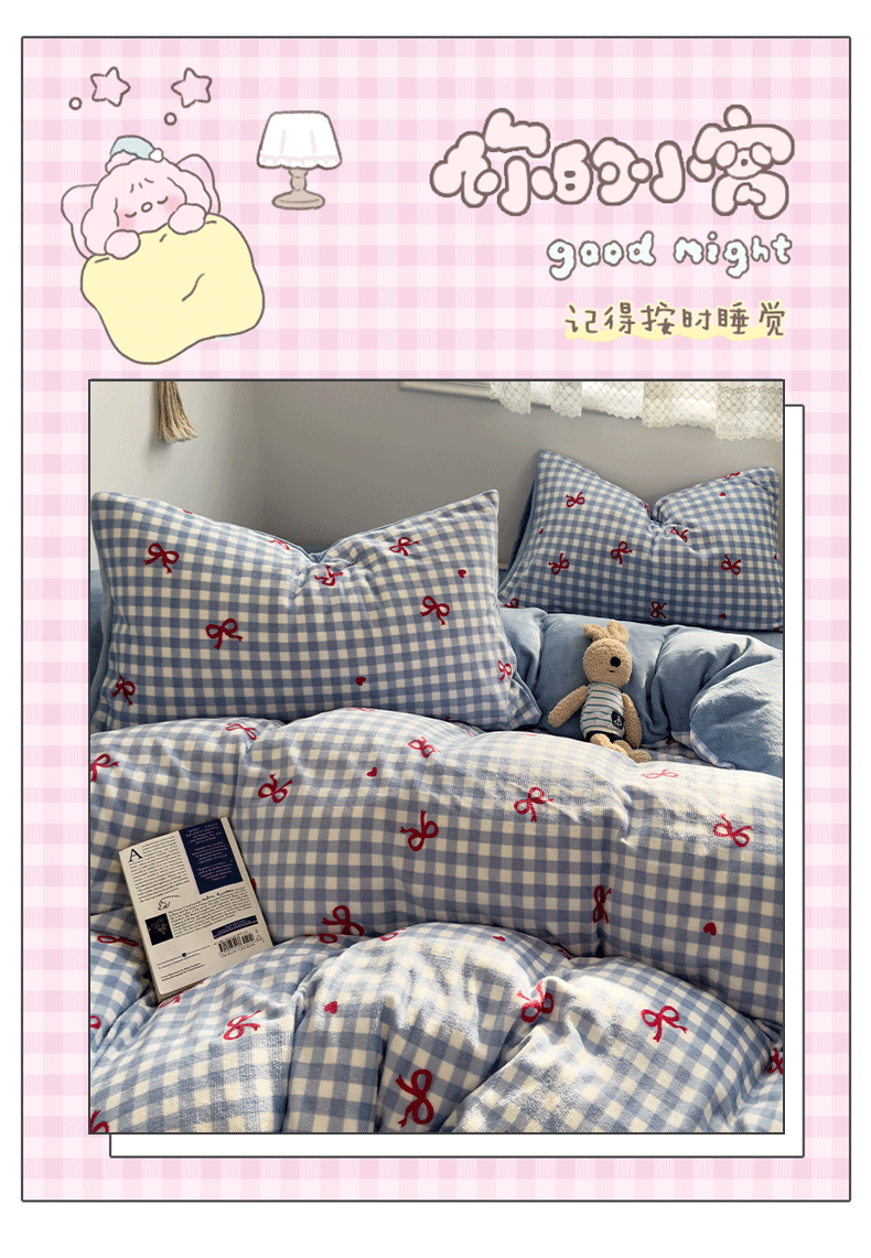 当前位置: 91家纺网 > 商品网购 > 床品套件 > 四件套 > 牛奶绒四件套 > 小叮当家纺仓储工厂店 买家秀 爆款花型2025新款秋冬保暖高克重牛奶绒小清新印花四件套系列-风格一 蓝格少女