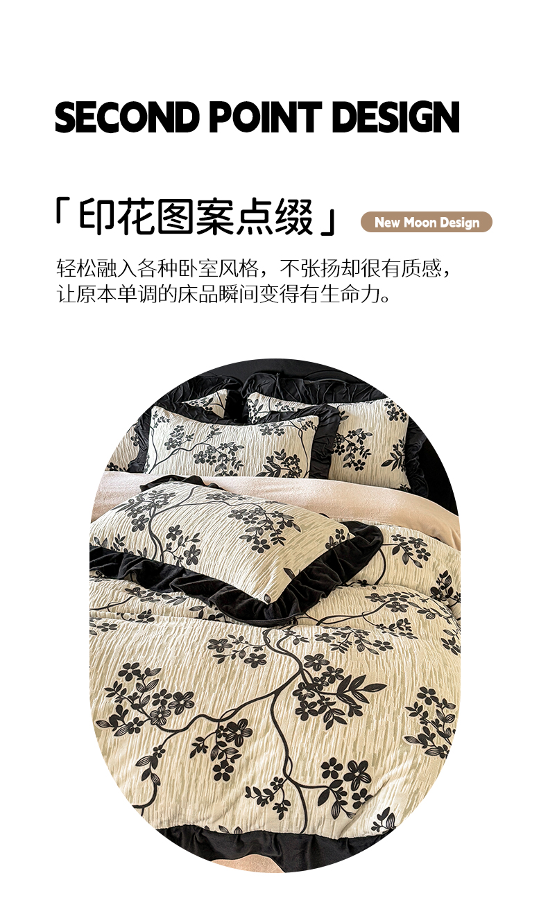(总)宅家居 2025新款热卖热款轻法式复古赫本风绒高克重浮雕花牛奶绒四件套烂花韩版黑色花边三件套,丛林迷影,蝶之花语,花恋密语,叶语悠然,蝶舞恋曲,花岸澜庭,壹枝玫瑰,夜半花香,优雅花卉