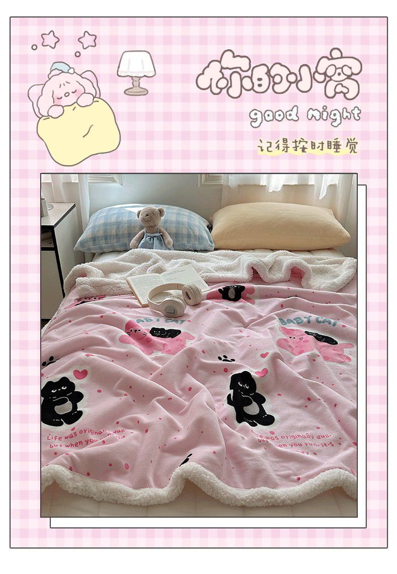 商品名称:小叮当家纺仓储工厂店 买家秀 爆款花型2025新款牛奶绒洛丽塔小清新印花系列毛毯毯子 皮皮猫
