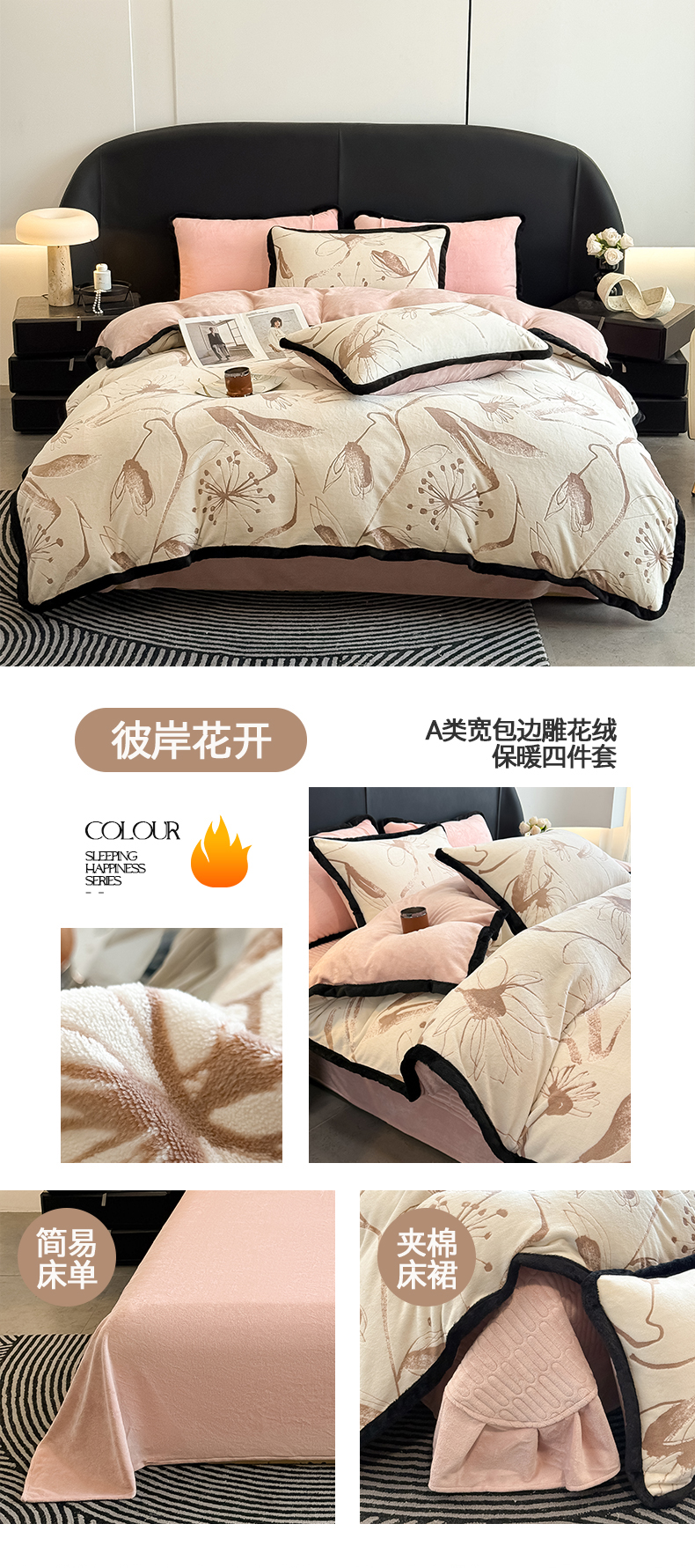 当前位置: 91家纺网 > 商品网购 > 床品套件 > 四件套 > 其它四件套 > 懒猫家纺 2025新款宽包边雕花绒四件套 彼岸花开