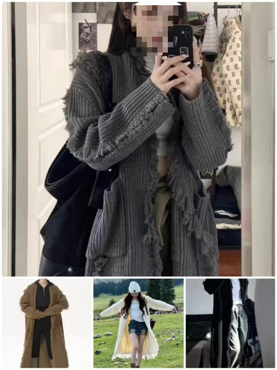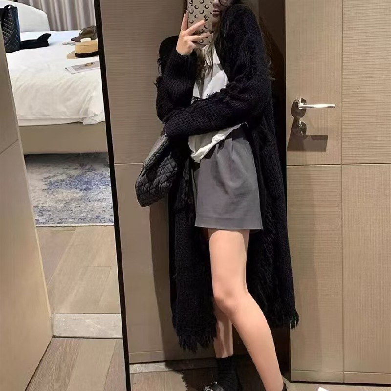 商品名称:(总)洛兰沙家居馆 只代发 拉风针织开衫女秋季新款慵懒风长款流苏设计感软糯时尚宽松毛衣女大衣