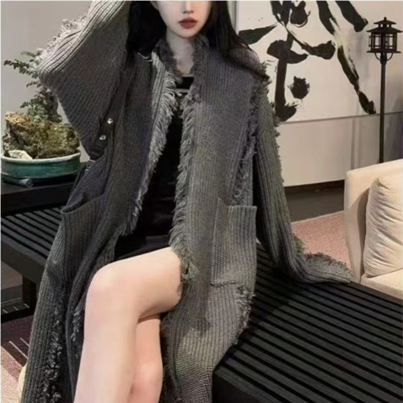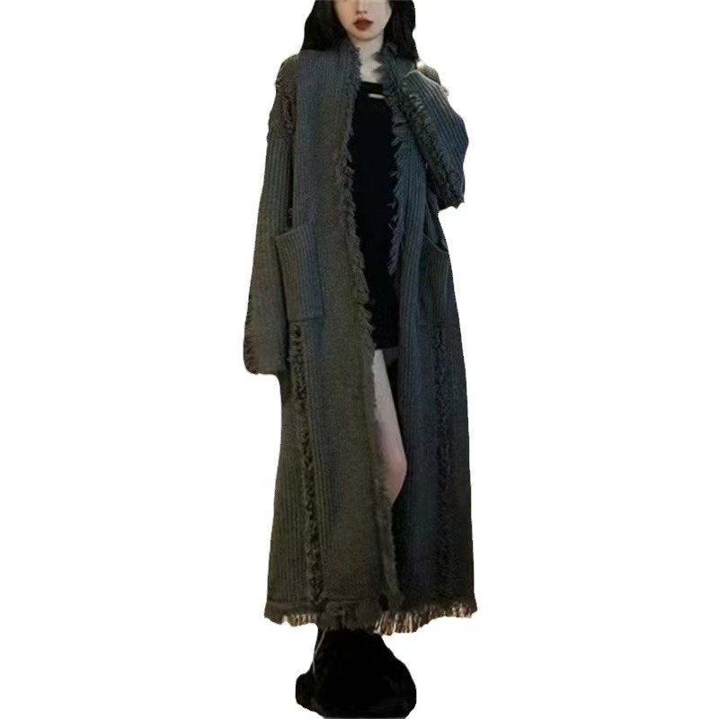 (总)洛兰沙家居馆 只代发 拉风针织开衫女秋季新款慵懒风长款流苏设计感软糯时尚宽松毛衣女大衣