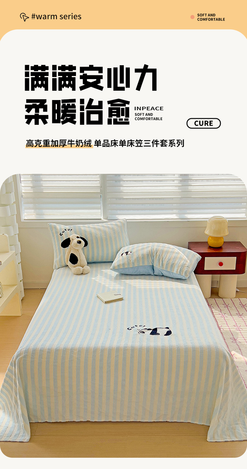 (总)小叮当家纺仓储工厂店 2025新款200克高克重牛奶绒单品床笠单件床笠,绒粉,绒黑,绒蓝
