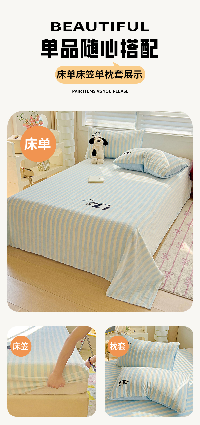 床上用品 > 床单 > 小叮当家纺仓储工厂店 买家秀 爆款花型2025新款小清新绣花牛奶绒经典条纹系列单品床单床笠床单床笠单件 床笠-粉条小猫