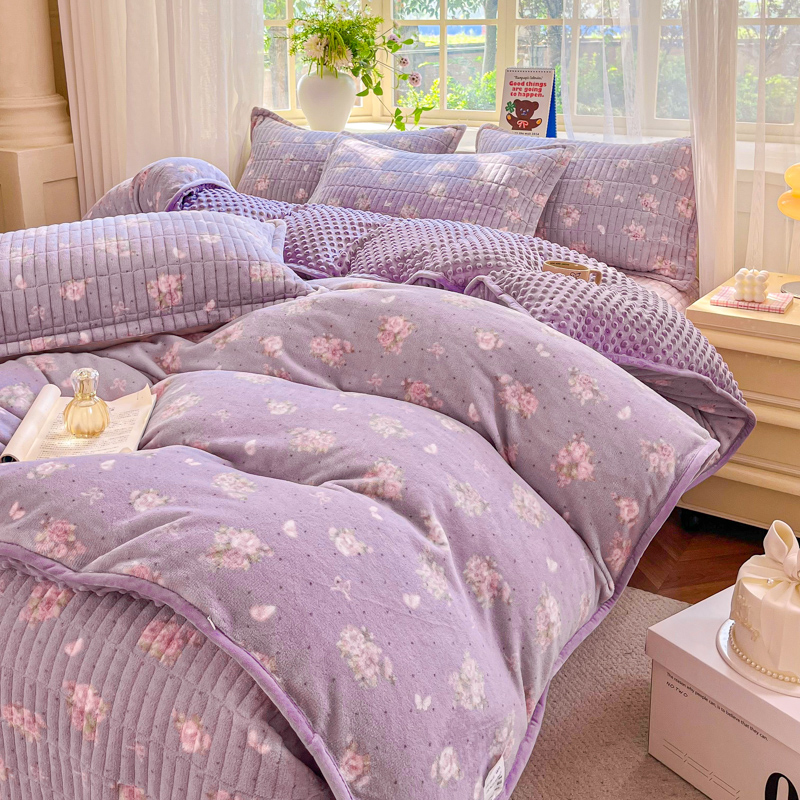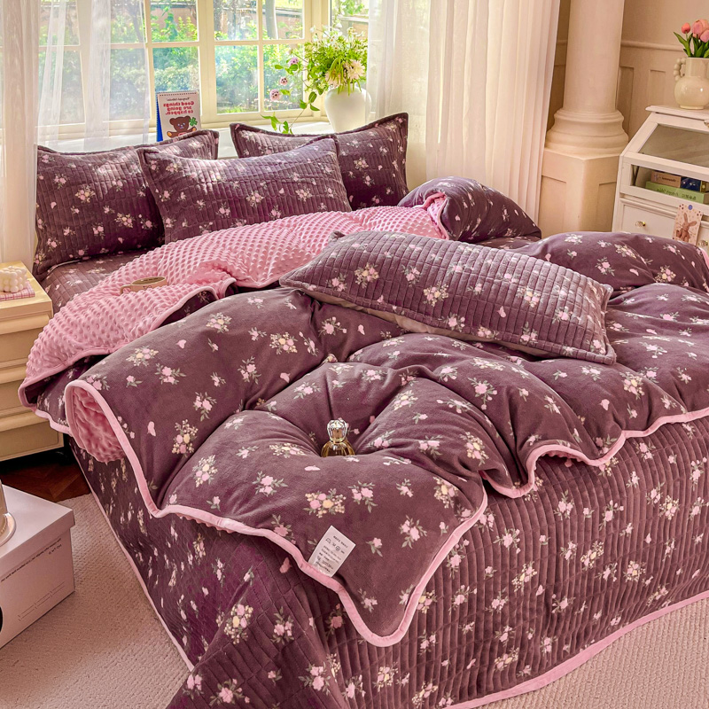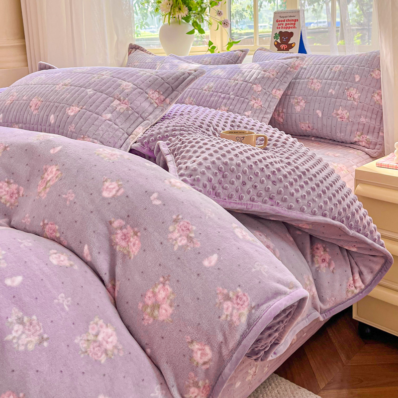 尚美 2025新款豆豆绒高克重床盖被套四件套 花田