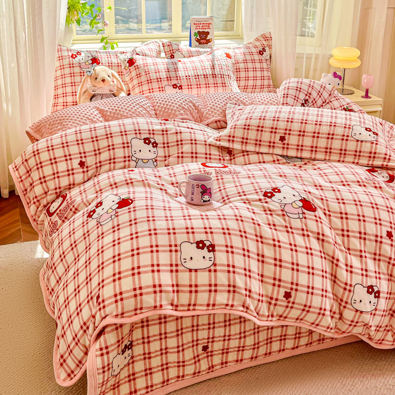 (总)尚美 2025新款毛巾绣牛奶绒床盖加棉加厚四件套,爆莓兔,背带熊猫,蛋糕猫,黑皮猫,恐龙,女孩,小粉象
