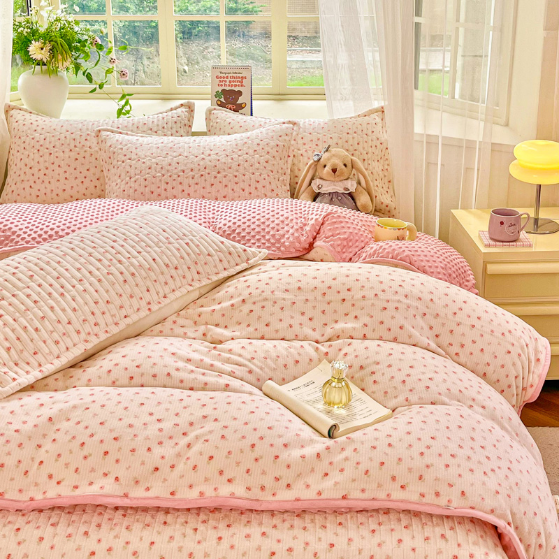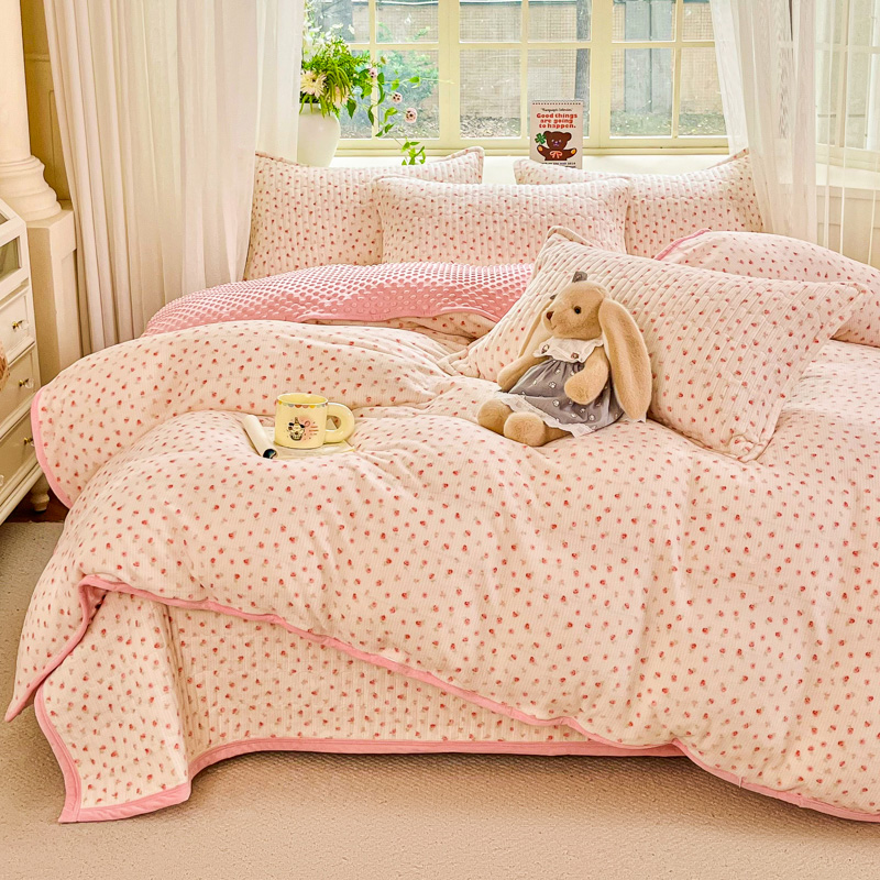 尚美 2025新款豆豆绒高克重床盖被套四件套 樱桃格