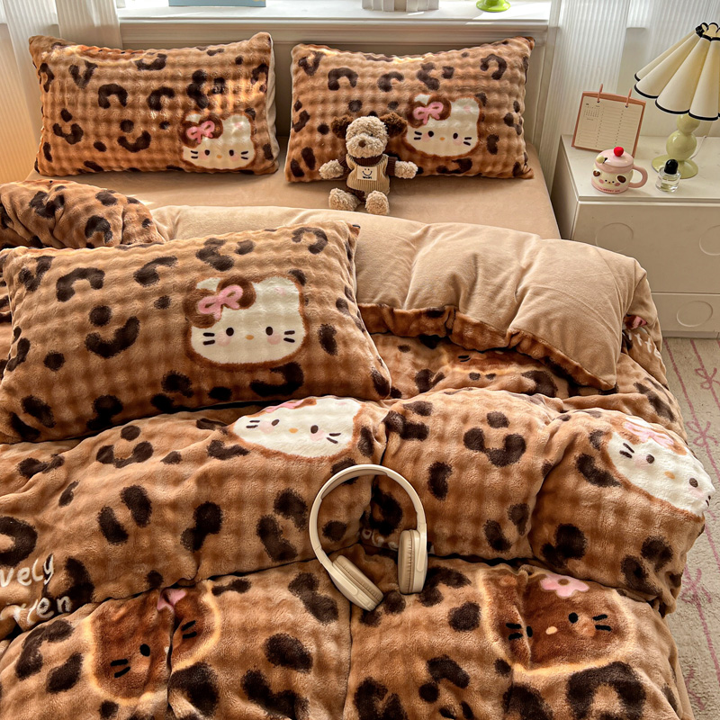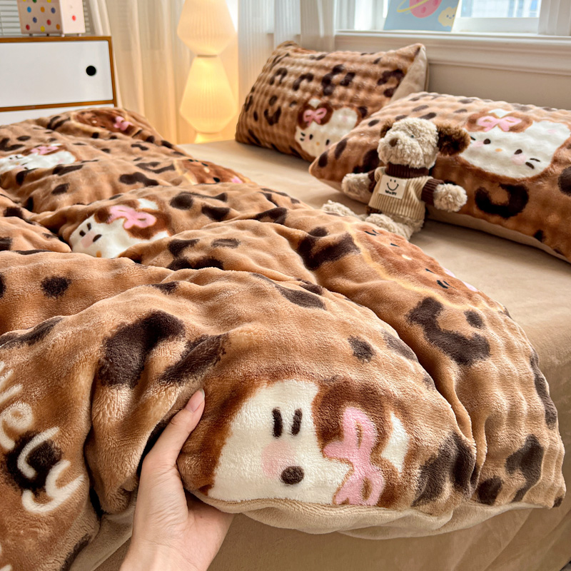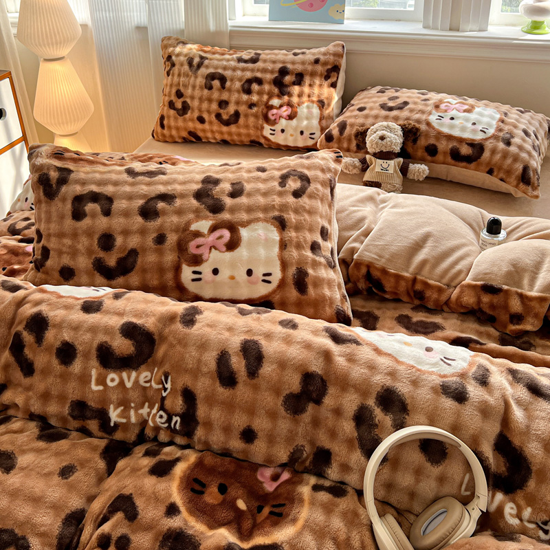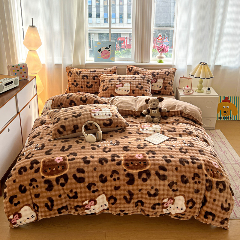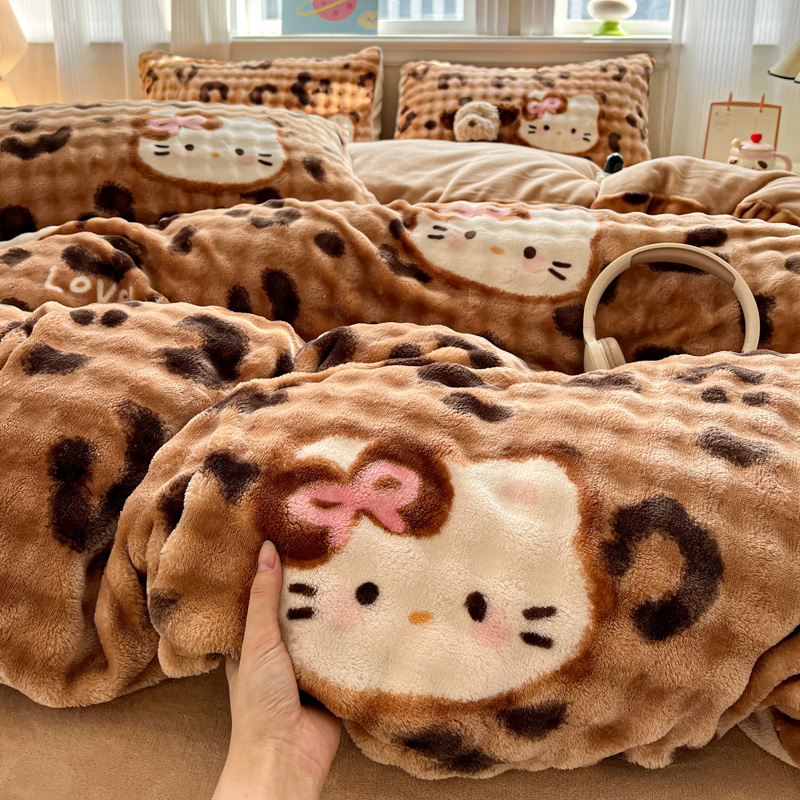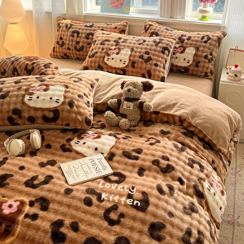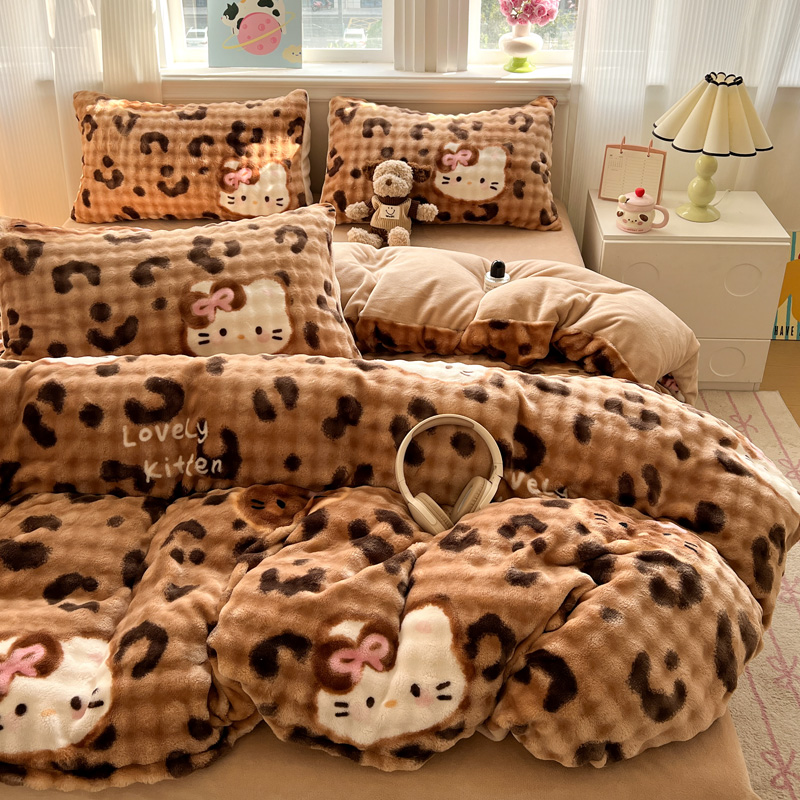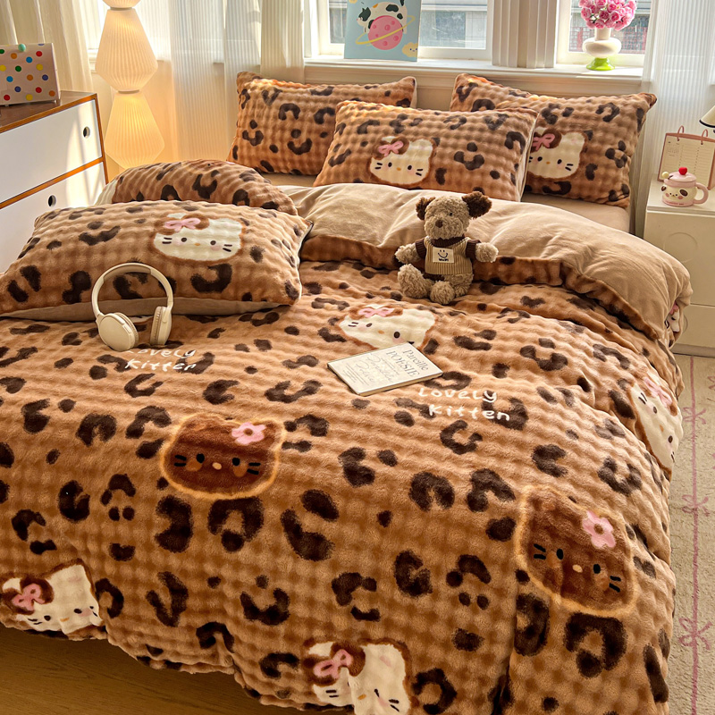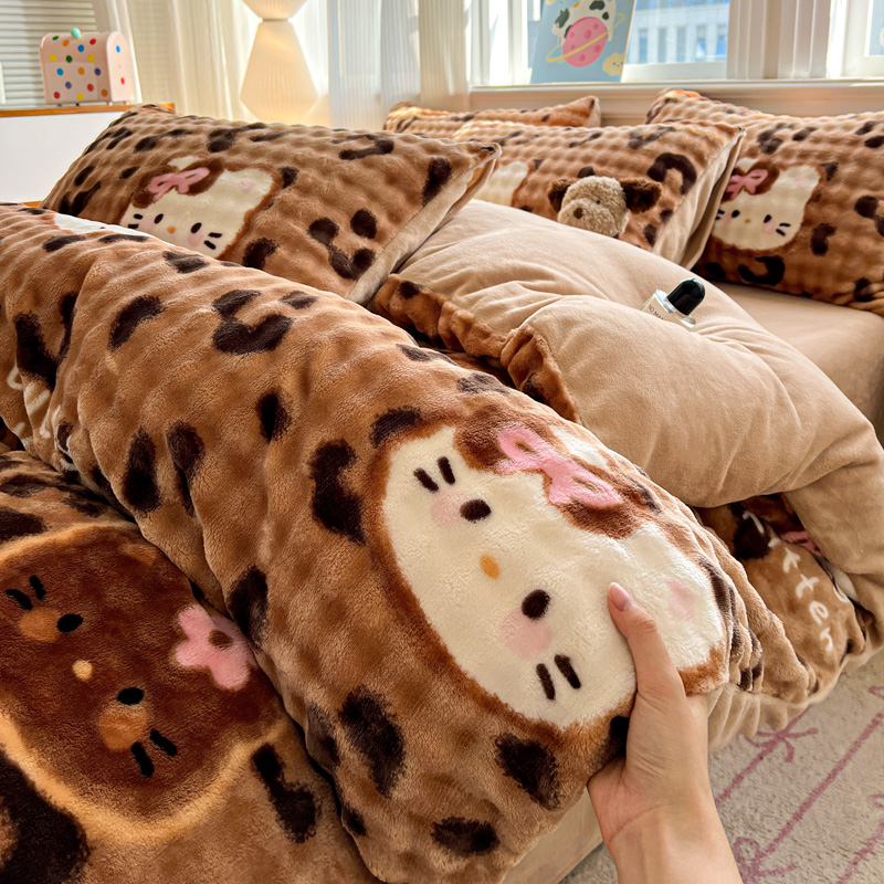 一比一 2025新款亲肤舒适保暖泡泡绒牛奶绒四件套 小野猫