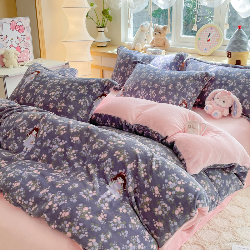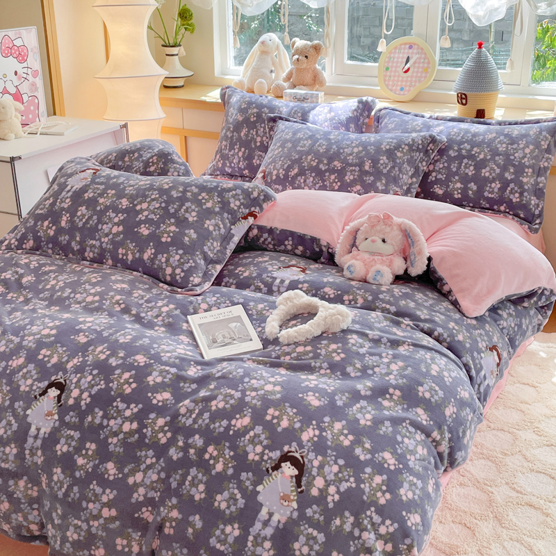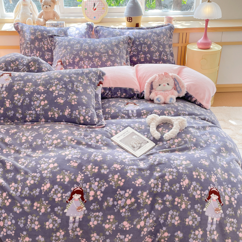 商品名称:一比一 2025新款双面牛奶绒四件套 爱丽丝花园