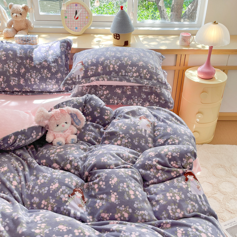 (总)一比一家纺 2025新款保暖舒适云感纱➕绒加绒四件套,樱桃灰,格子蝴蝶结紫,黛秋,蝶影 - 灰,花漾,蝶影- 紫,冬日暖阳,蝴蝶结点点- 紫,兰亭序,兰溪,曼塔玫瑰,南城旧事,闲趣花开,樱桃小狗,紫蔓花开,格林黑,小美满,婉约