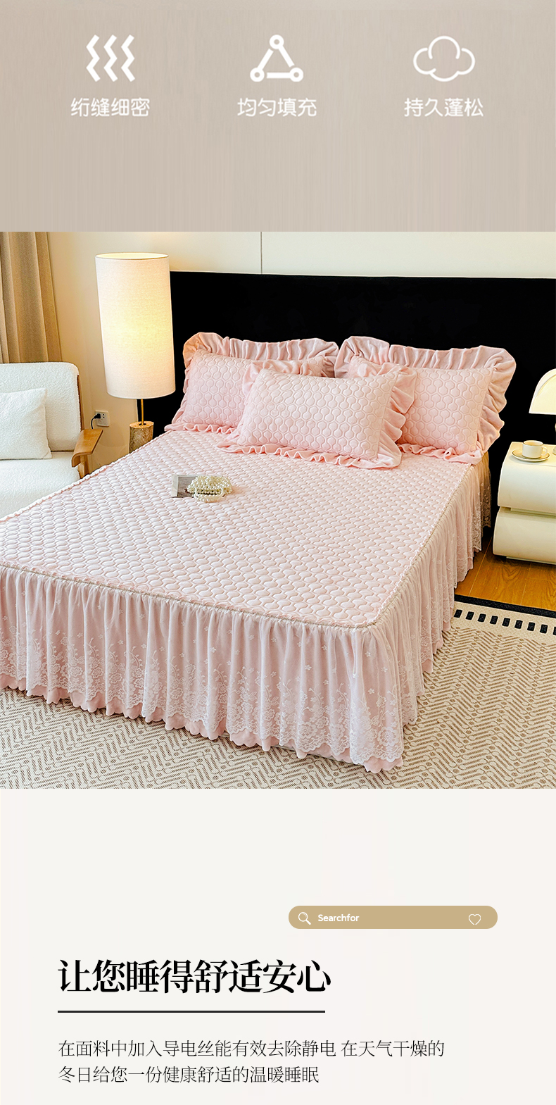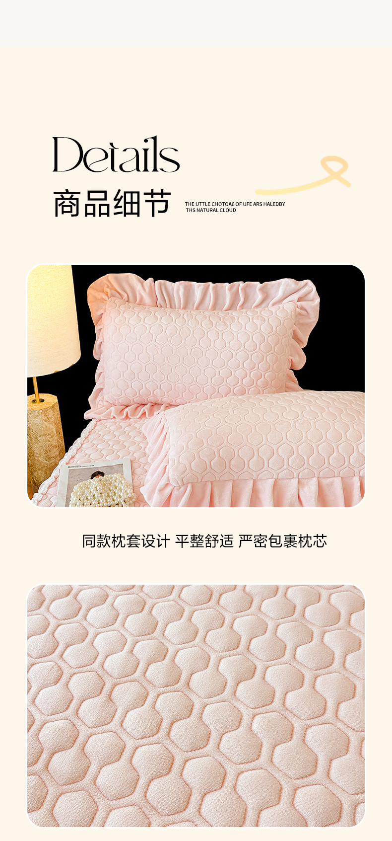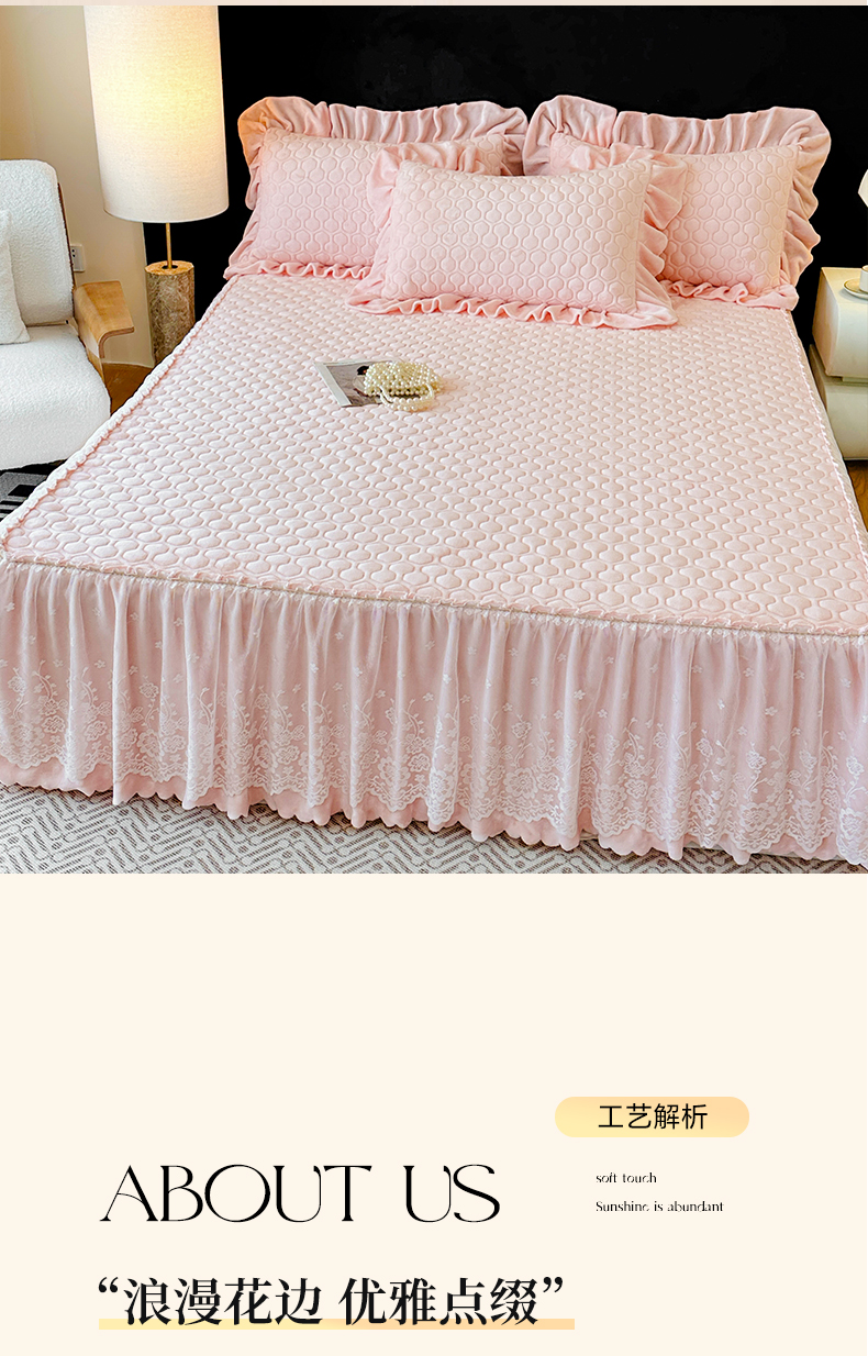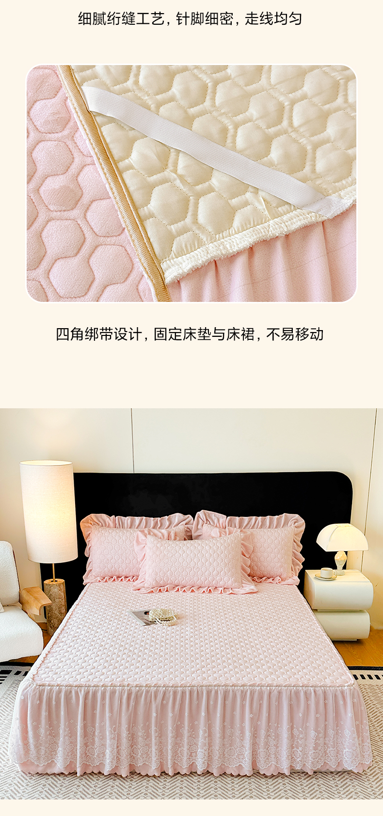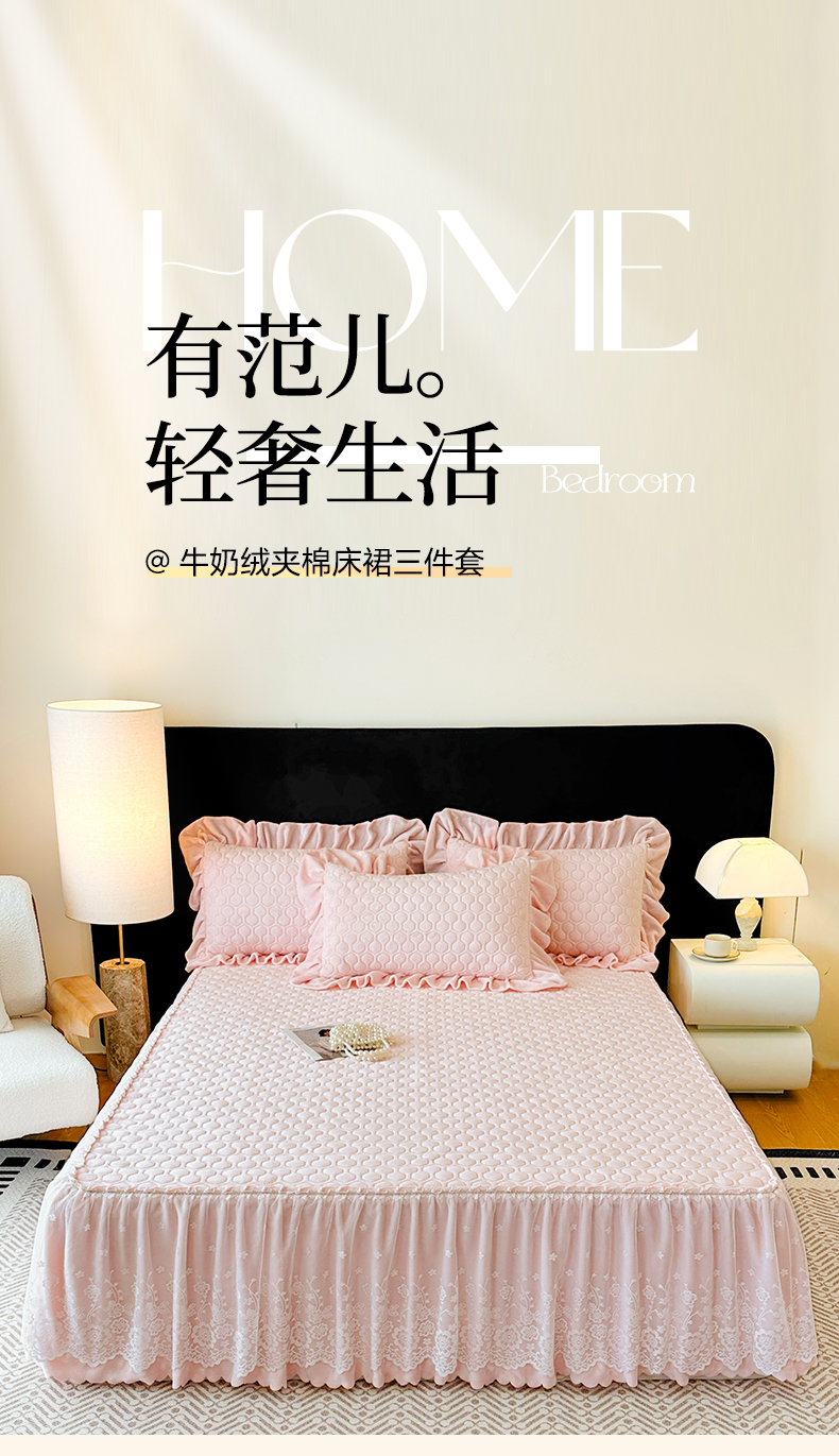 当前位置: 91家纺网 > 商品网购 > 床品套件 > 三件套 > 民新家纺 2025新款牛奶绒夹棉床裙三件套 浪漫时光-浅粉