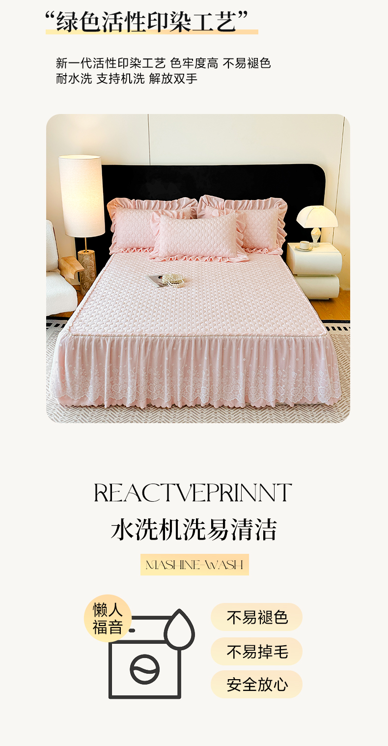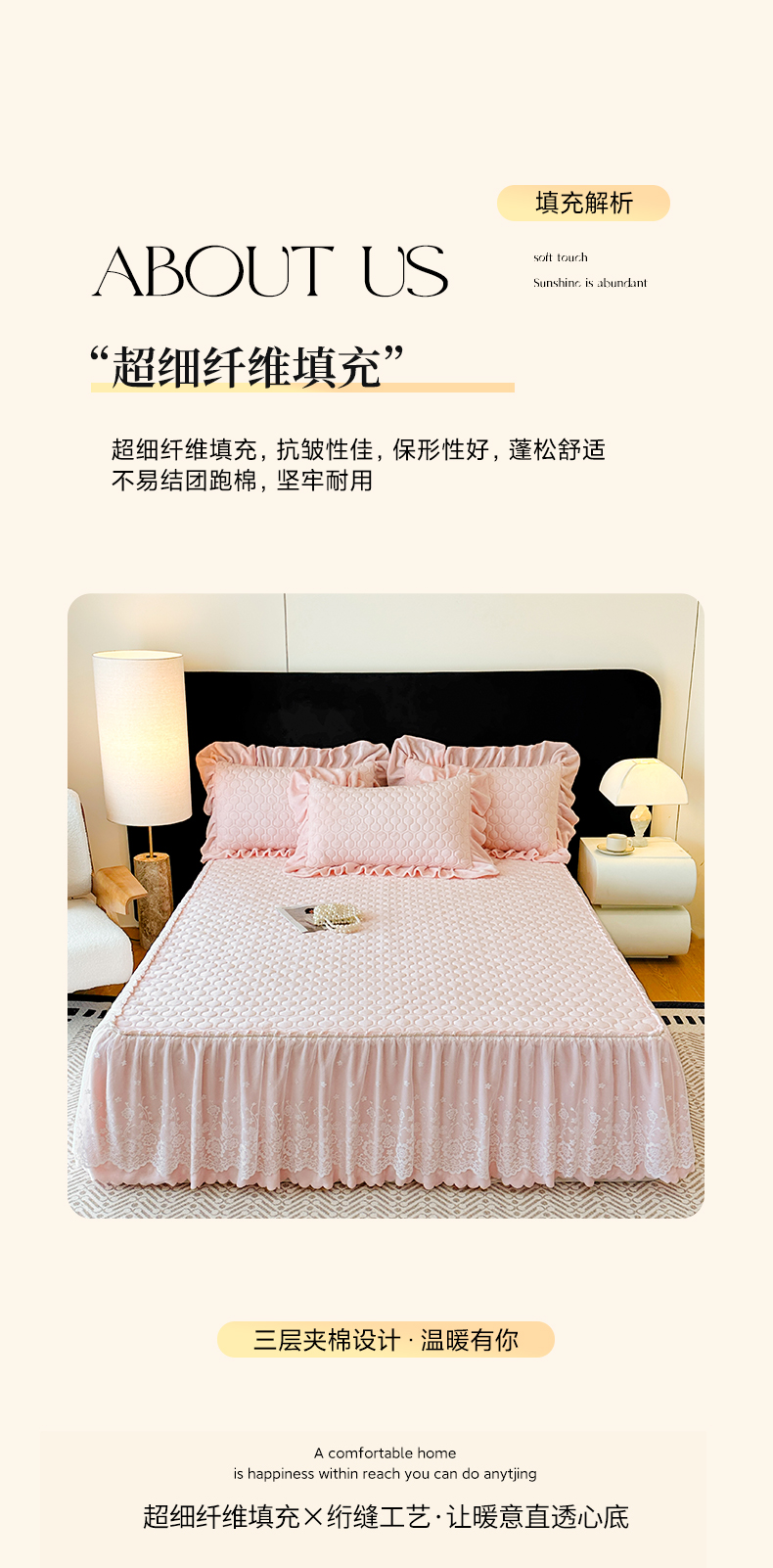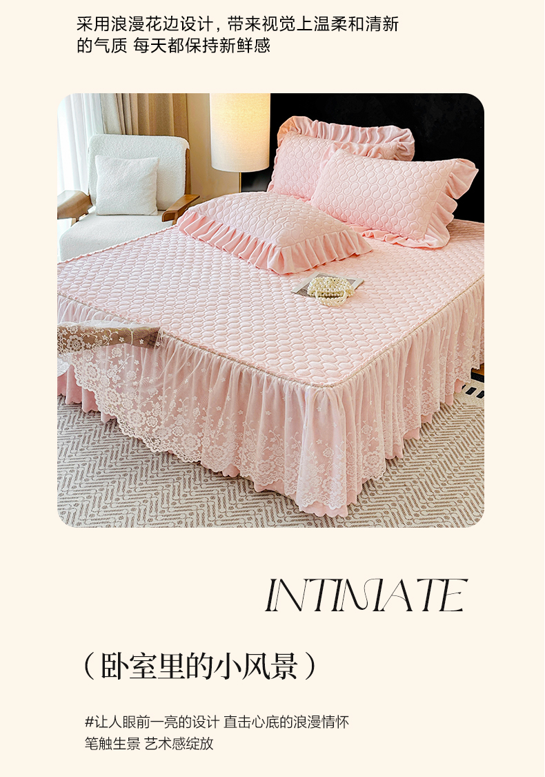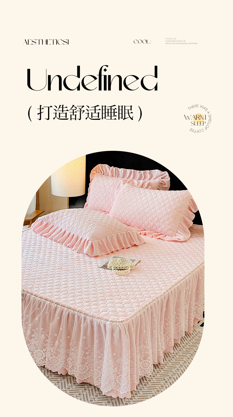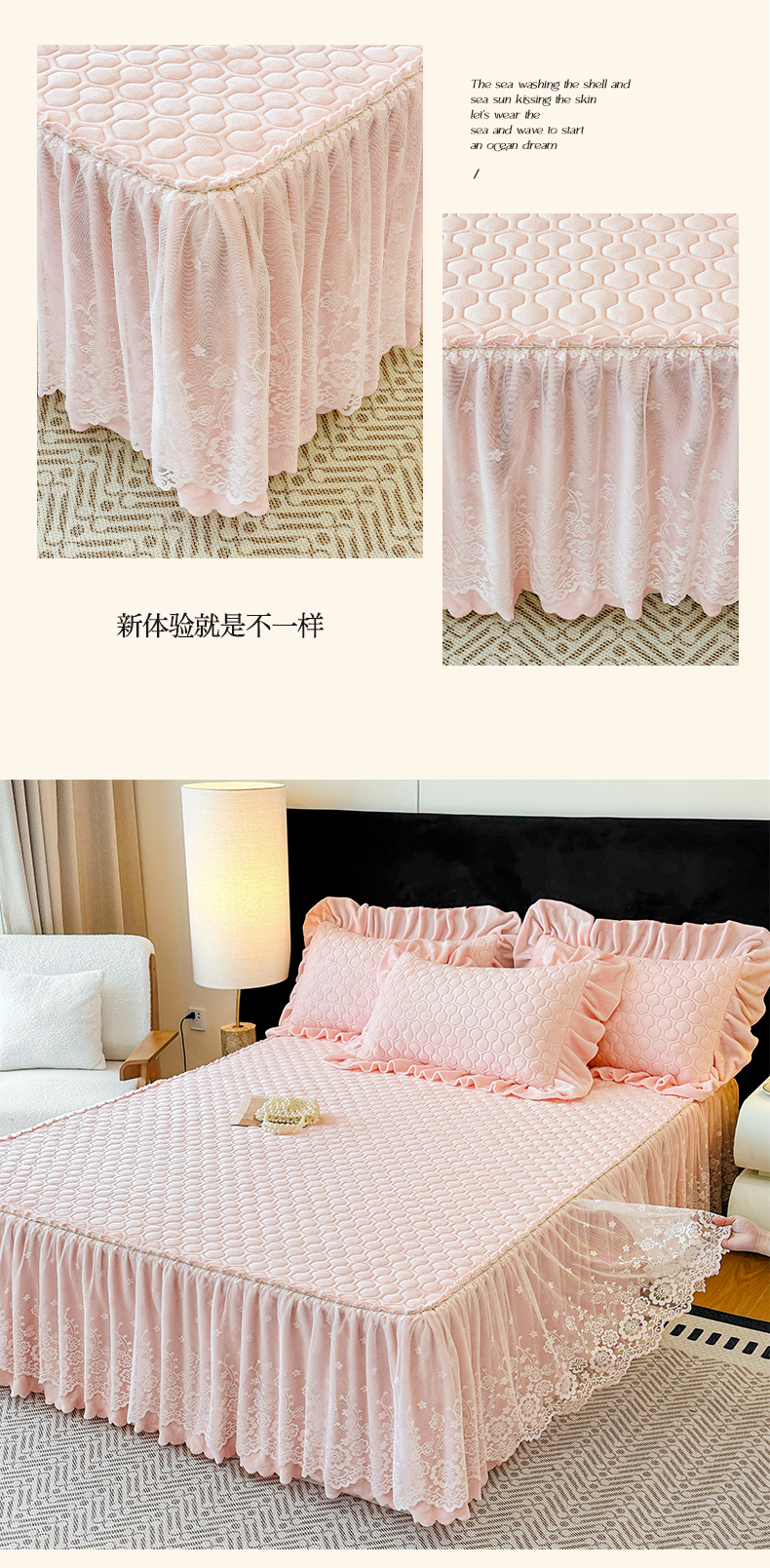当前位置: 91家纺网 > 商品网购 > 床品套件 > 三件套 > 民新家纺 2025新款牛奶绒夹棉床裙三件套 浪漫时光-浅粉