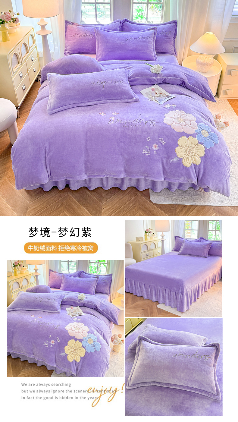 当前位置: 91家纺网 > 商品网购 > 床品套件 > 四件套 > 牛奶绒四件套 > 梦纤绒 2025秋冬新款8斤220g全消光牛奶绒系列四件套-梦境 梦境--梦幻紫