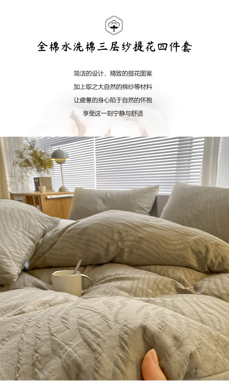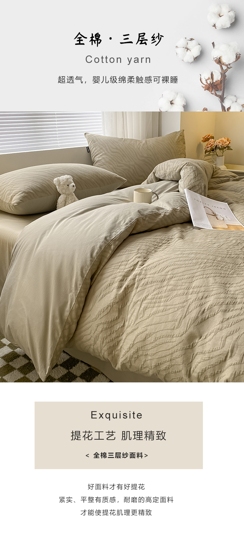 当前位置: 91家纺网 > 商品网购 > 床品套件 > 四件套 > 水洗棉四件套 > 宜代光年 2025新款三层纱60s水洗棉提花系列四件套 斑马纹