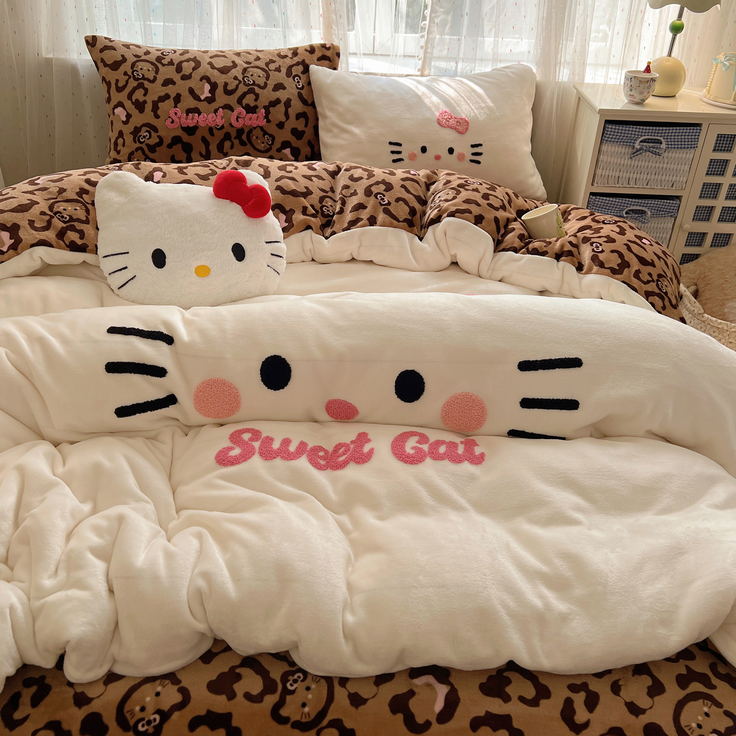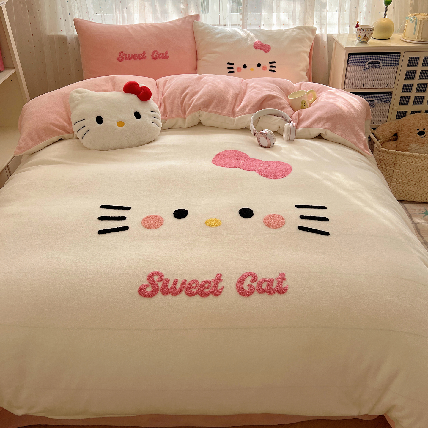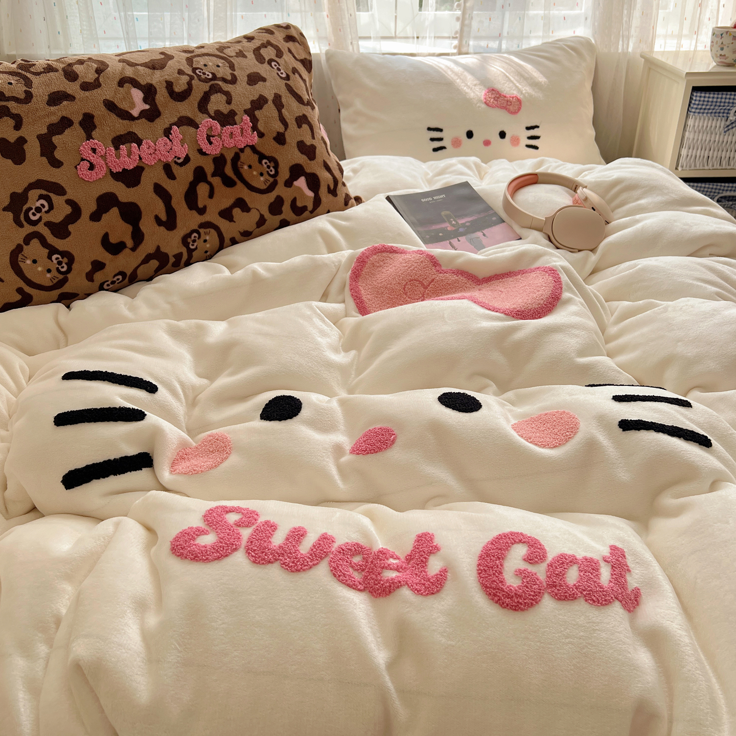 商品名称:顾里家纺 2025新款可爱表情包毛巾绣牛奶绒四件套 粉皮咖猫