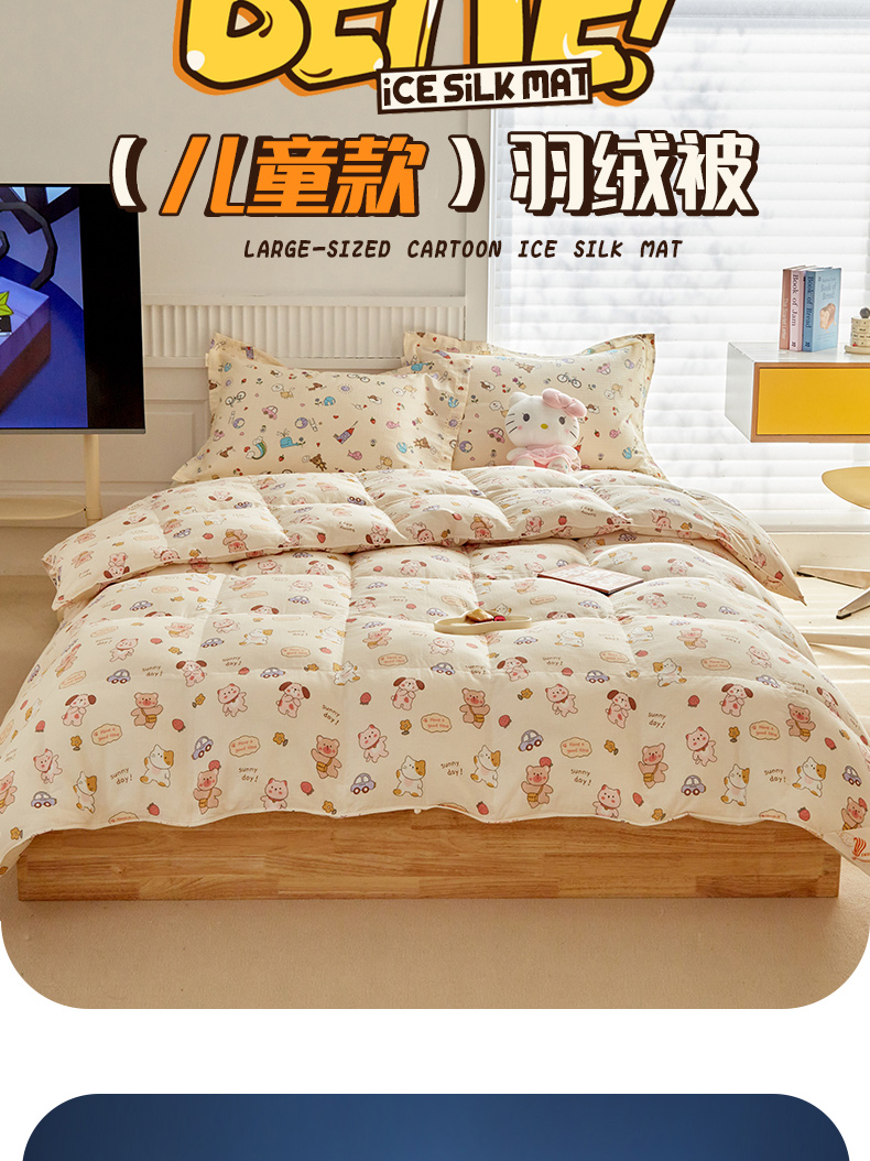 • 91家纺网 家纺一手货源 找家纺 (总)暖羽屋羽绒馆 2025新款抗菌防螨绒子含量95白鸭绒被芯1.5米儿童羽绒被子婴幼儿学生鸭绒被春秋被,成绩兔出,鸿运兔,奶糖大白兔,汽车恐龙