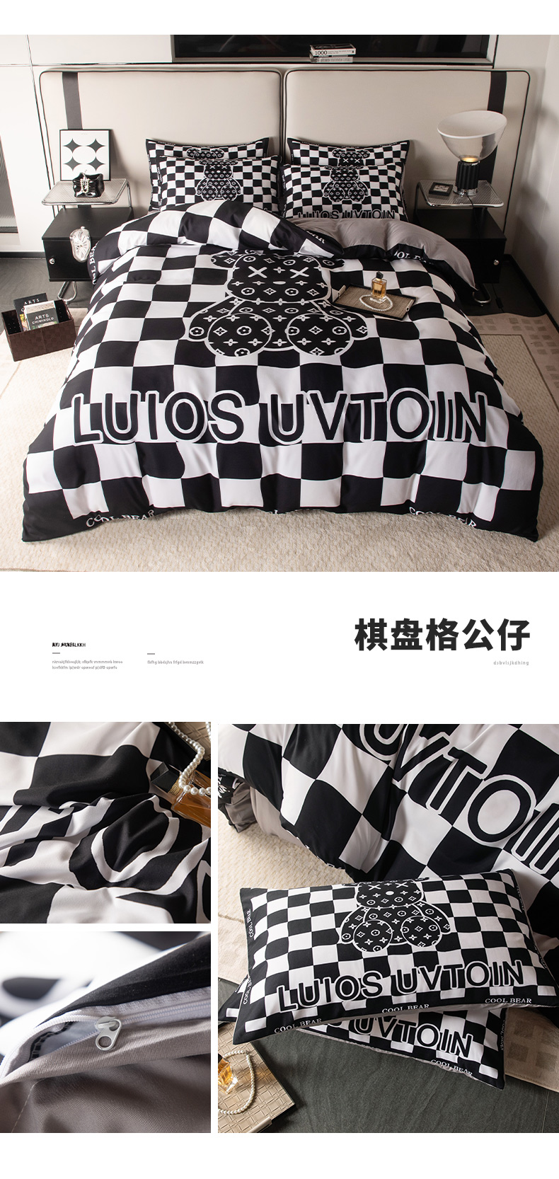 (总)色鬼布艺高端家居主号 2025新款数码印花牛奶绒四件套,白香花,黑白V,灰迪,经典兔,咔芬,卡夫兔,路易兔,罗兰粉,萌迪,萌萌兔,七彩熊,棋盘兔,熊头白,熊仔白,熊仔咖