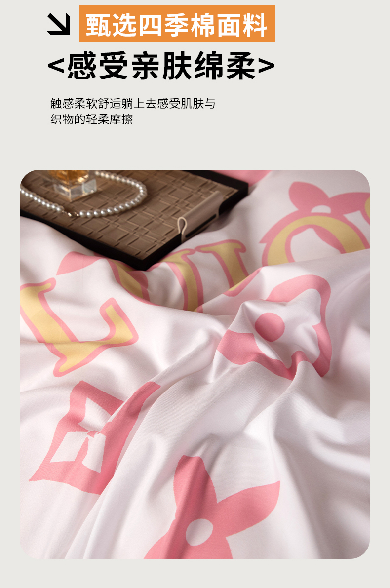 (总)色鬼布艺高端家居主号 2025新款轻奢亲肤纯棉数码印花网红热款四件套,豹纹香,白金V,白香花,大H,黑白迪,黑白V,灰迪,咖古,克莱因,慕斯小姐,山茶花,星空