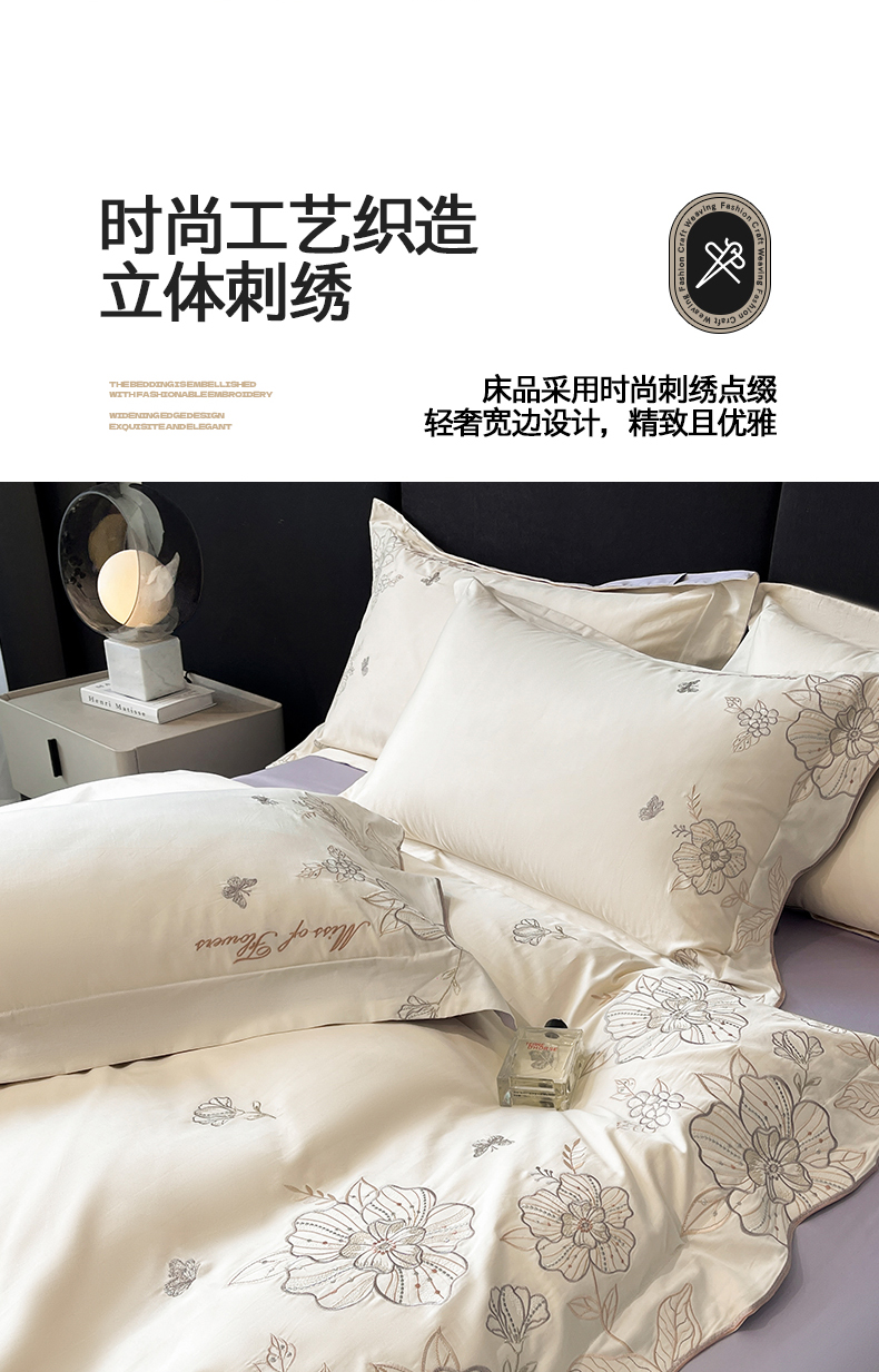 当前位置: 91家纺网 > 商品网购 > 床品套件 > 四件套 > 磨毛活性四件套 > 置顶家纺 2025新款亲肤加厚磨毛刺绣四件套-花间拾梦系列 花间拾梦-白+香芋紫