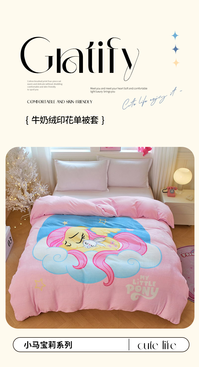 商品名称:蘭菲家纺 2025新款小马宝莉牛奶绒单被套 被套单件 晚安-宝莉