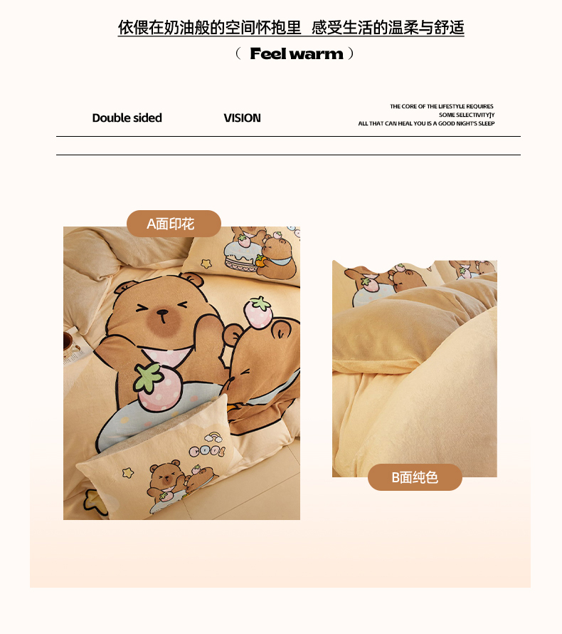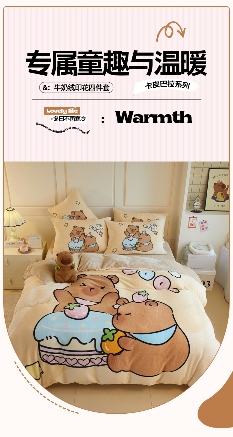 当前位置: 91家纺网 > 商品网购 > 床品套件 > 四件套 > 牛奶绒四件套 > 蘭菲家纺 2025新款卡皮巴拉牛奶绒四件套 爱卡皮