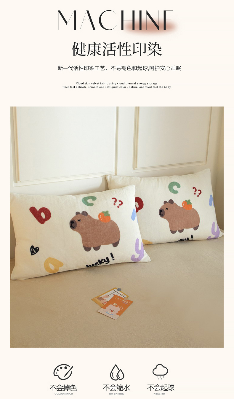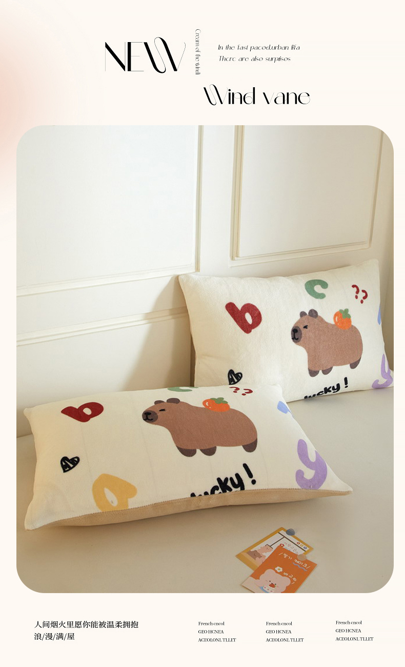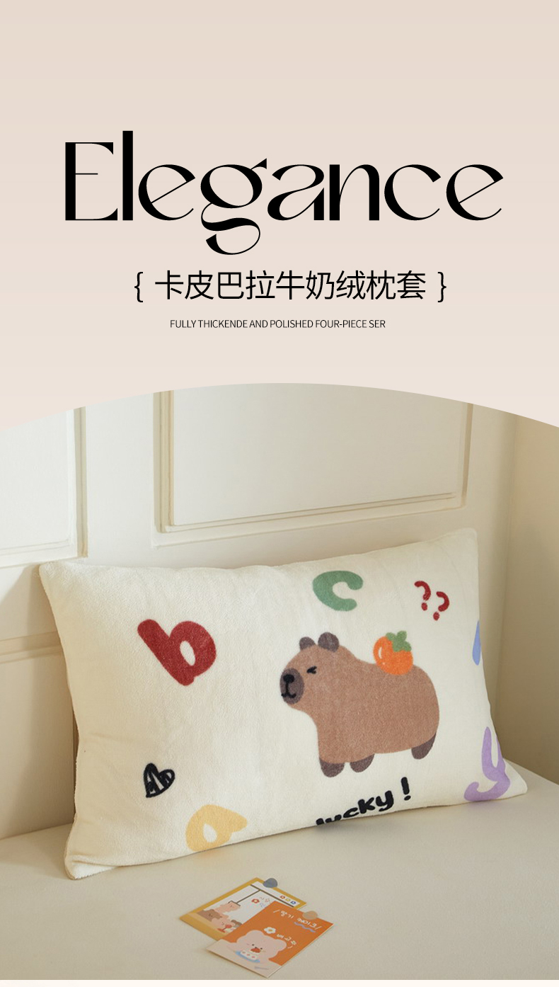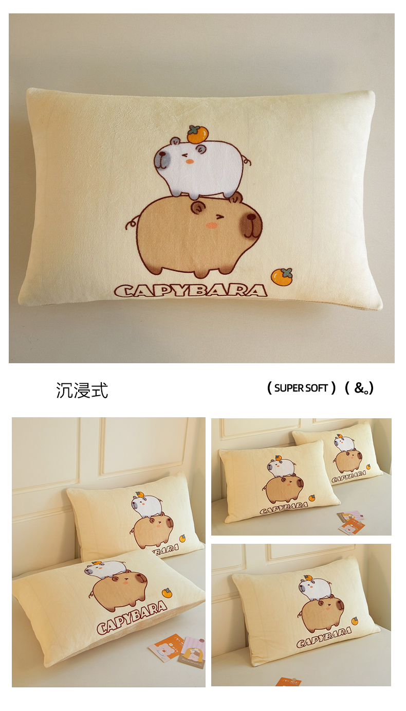 商品名称:蘭菲家纺 2025新款卡皮巴拉牛奶绒单枕套 枕套单件 皮小萌