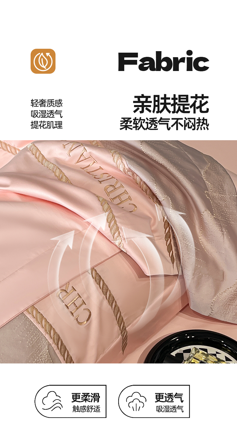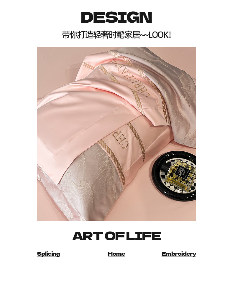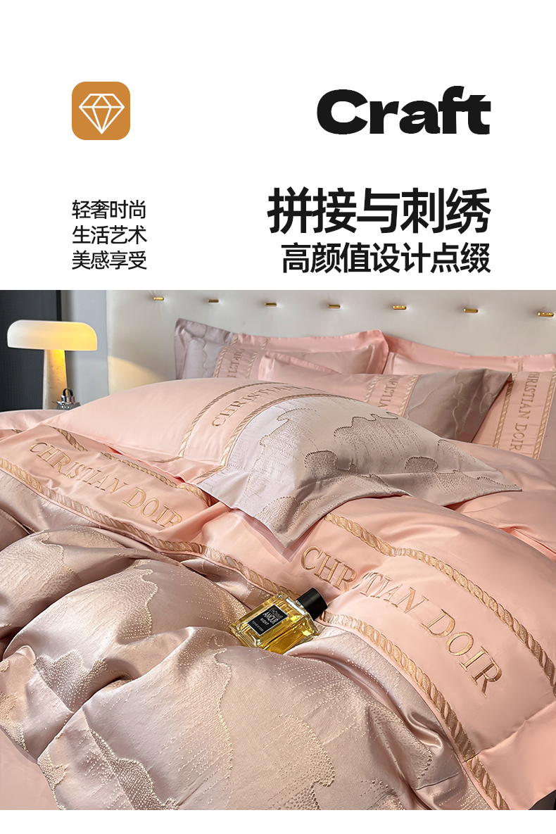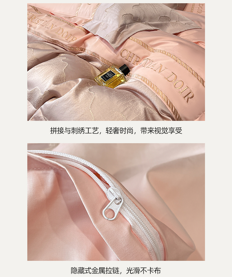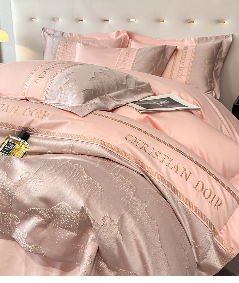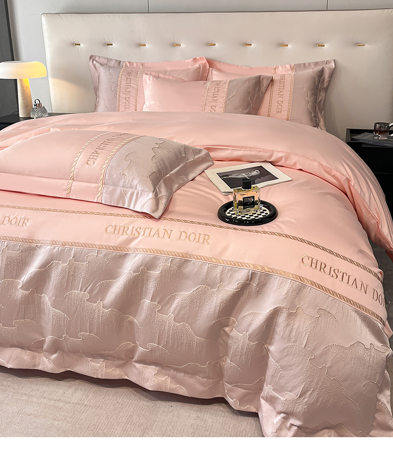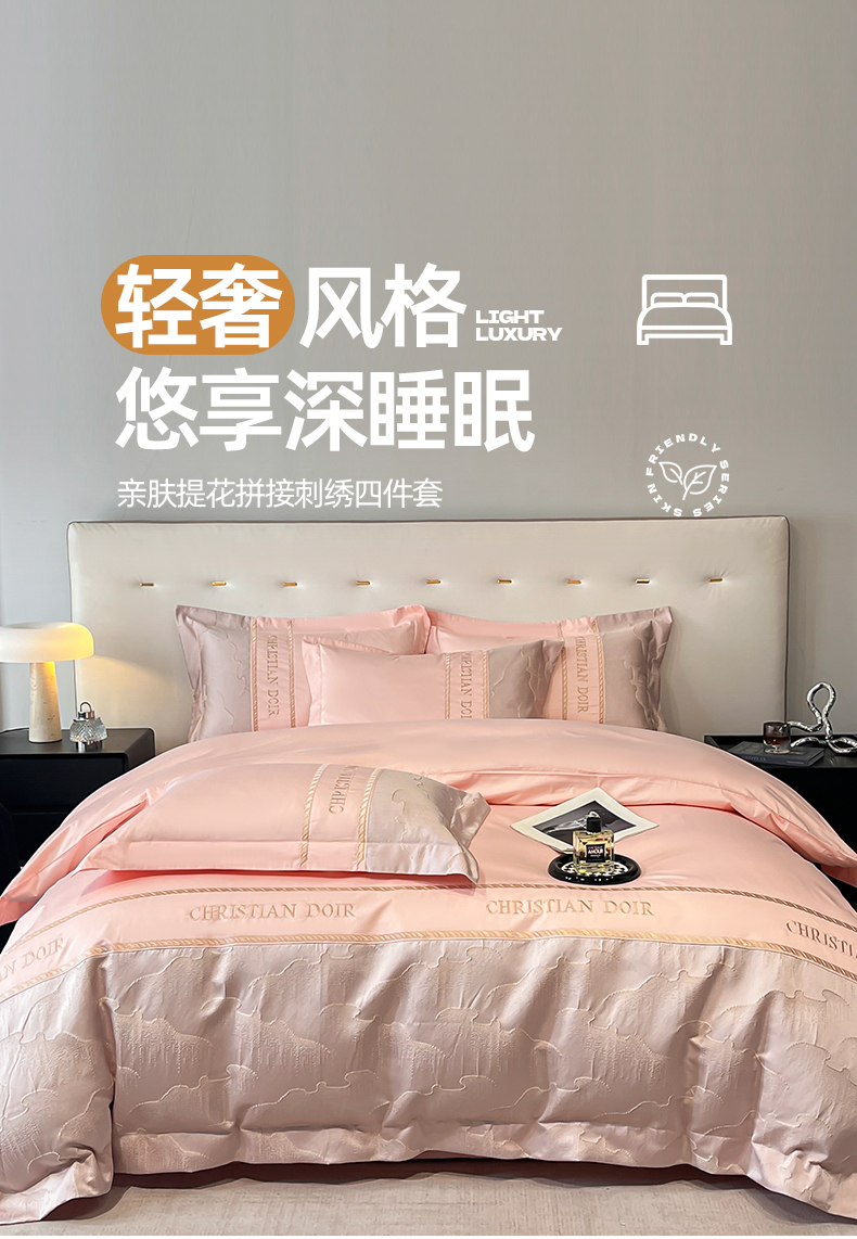 当前位置: 91家纺网 > 商品网购 > 床品套件 > 四件套 > 提花四件套 > 置顶家纺 2025新款亲肤提花拼接刺绣四件套系列 璞云-粉玉