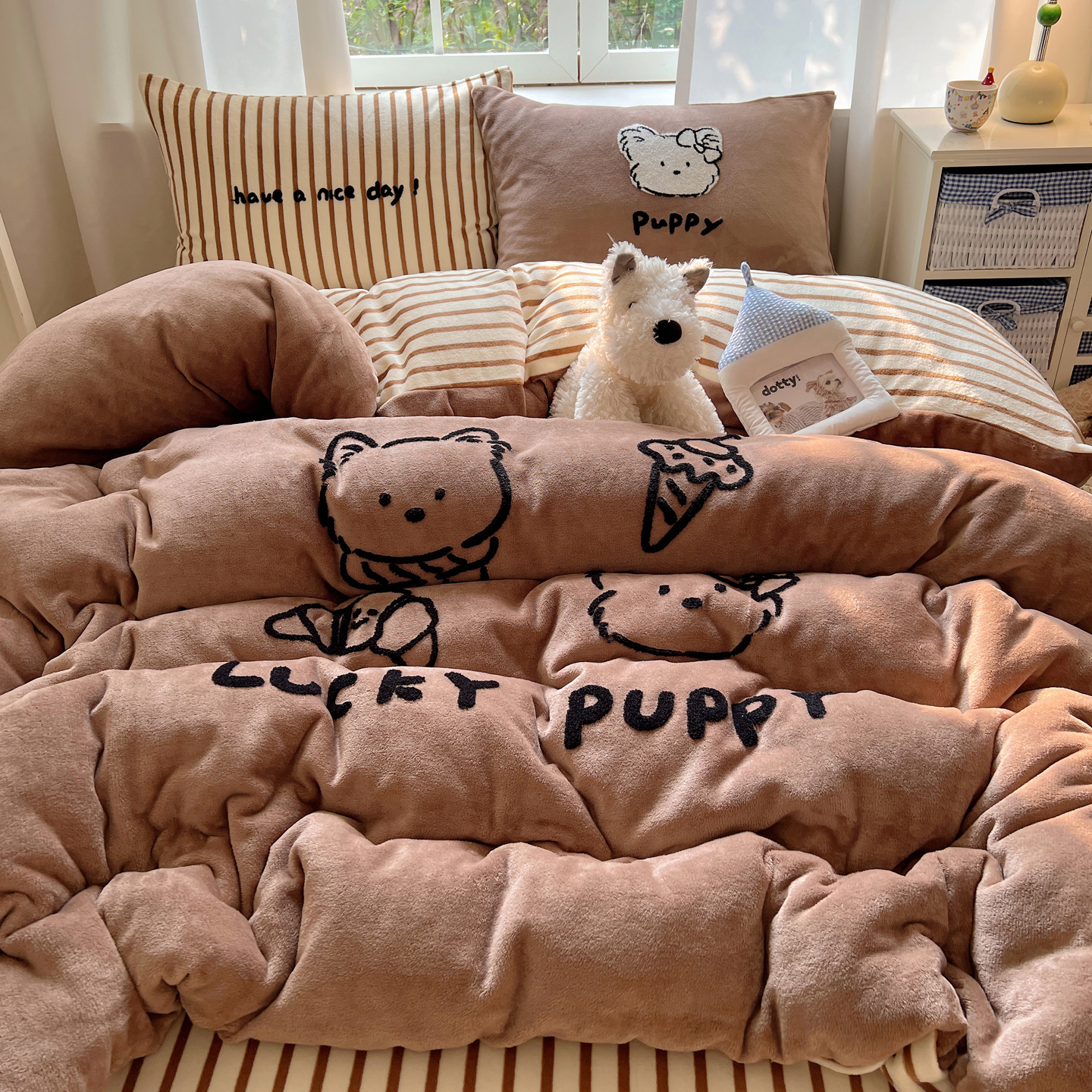 (总)桃喜 2024新款13372学生季全棉宿舍三件套,比熊小狗,波点动物园,波点西高地,狗狗家族,蝴蝶结小兔,蓝色小狗,喵星人,茉莉兔,潘多拉,晚安宝贝,小熊派对