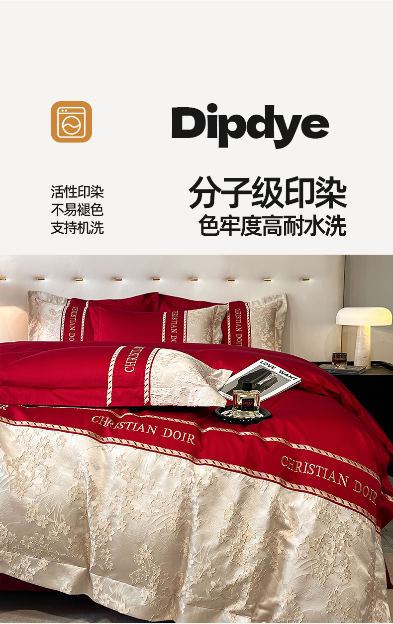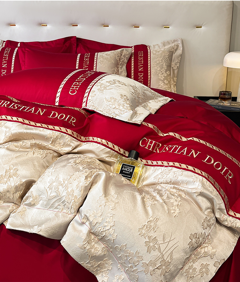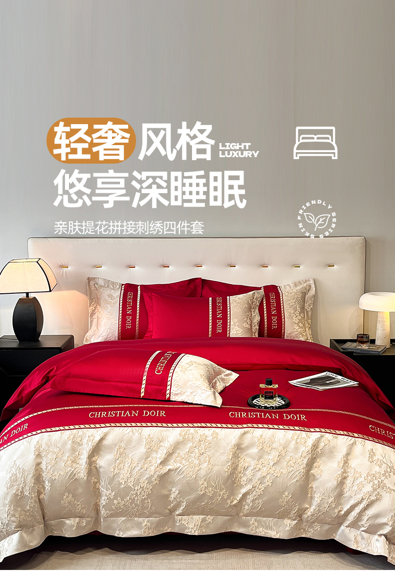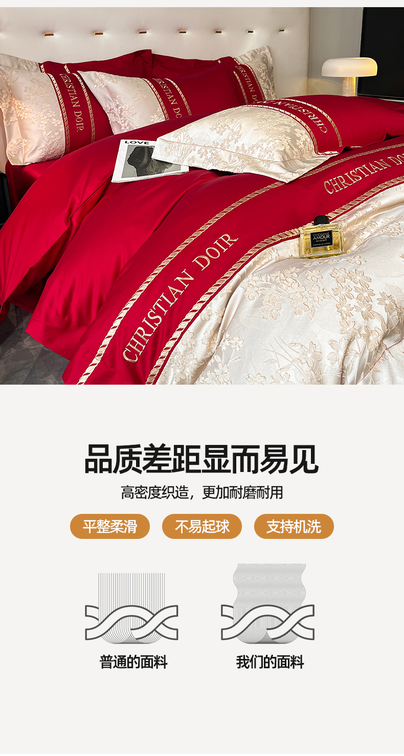 商品名称:置顶家纺 2025新款漫芙提花亲肤系列四件套 漫芙-大红