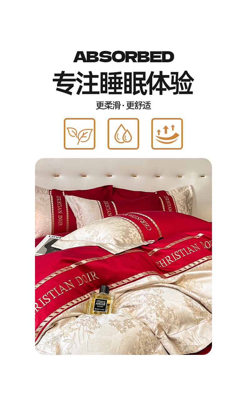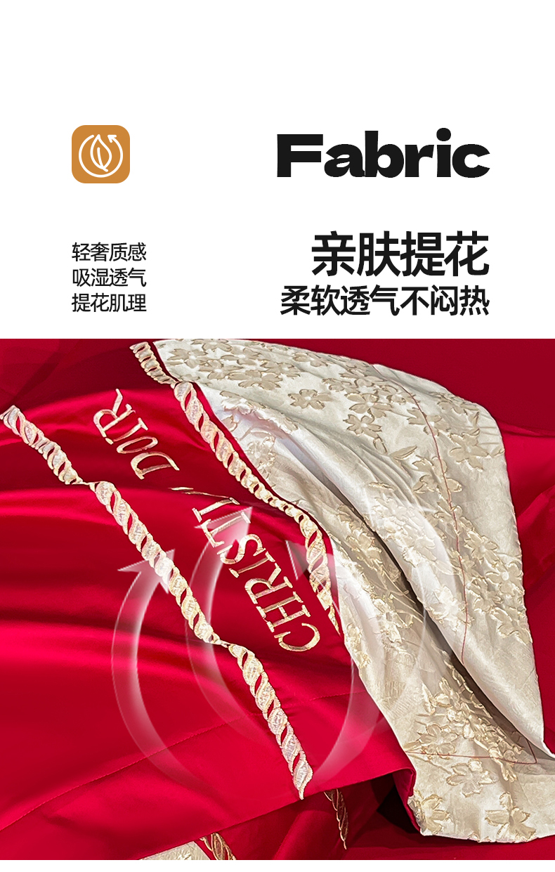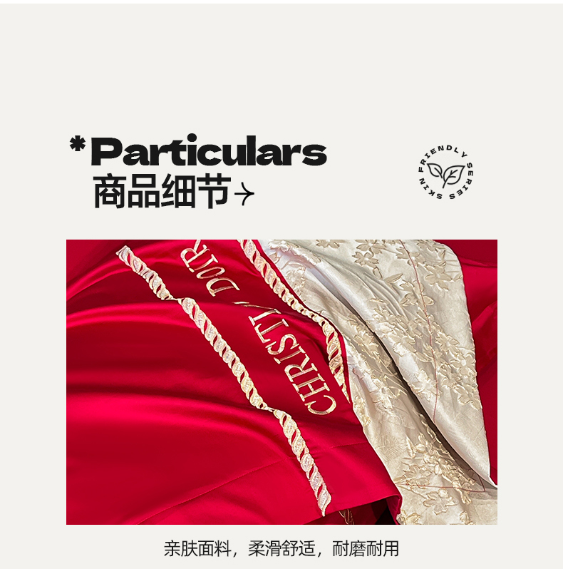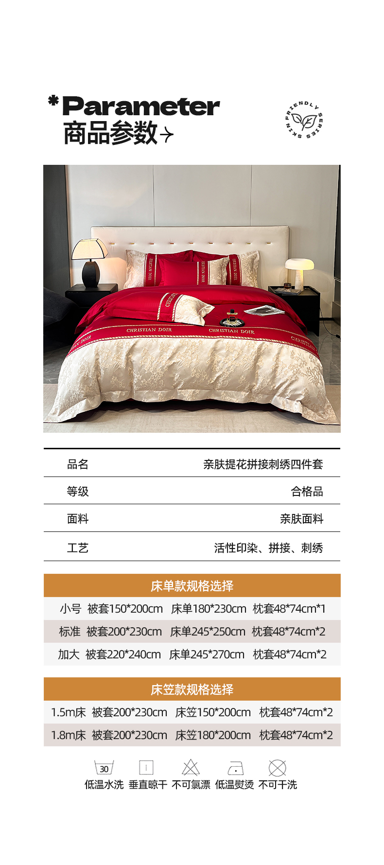 商品名称:置顶家纺 2025新款漫芙提花亲肤系列四件套 漫芙-大红