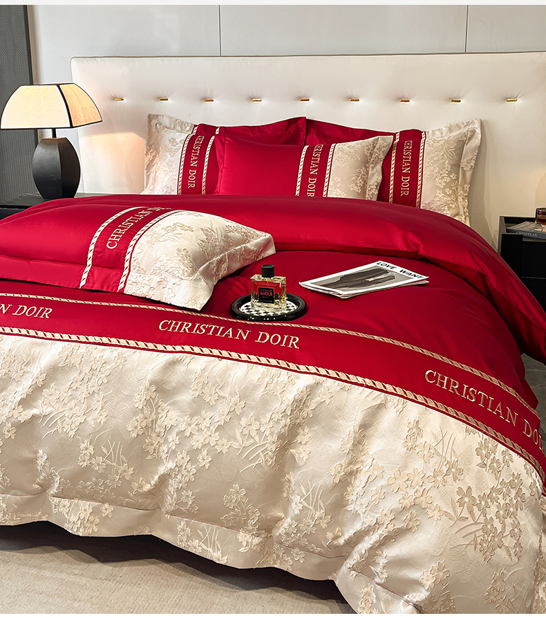 置顶家纺 2025新款漫芙提花亲肤系列四件套 漫芙-大红