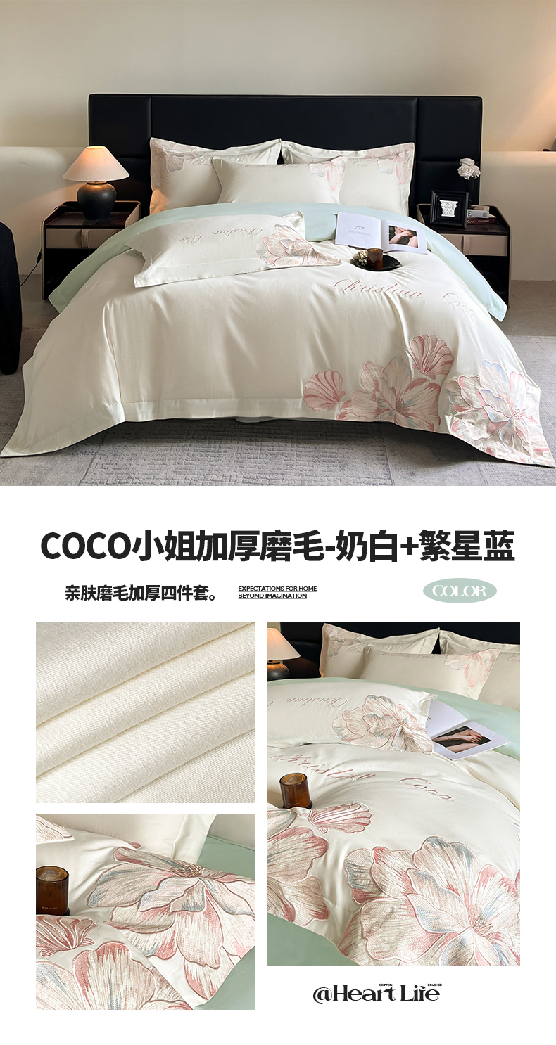 当前位置: 91家纺网 > 商品网购 > 床品套件 > 四件套 > 磨毛活性四件套 > 置顶家纺 2025新款COCO小姐加厚磨毛亲肤四件套 COCO小姐加厚磨毛-繁星蓝