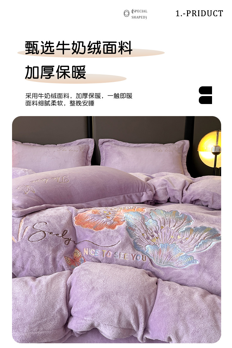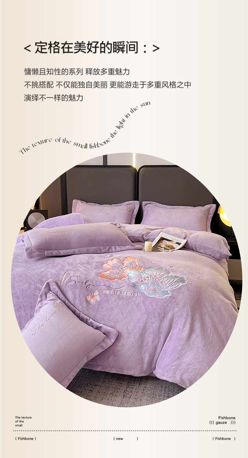 (总)玖明家纺 2025新款牛奶绒刺绣绣花四件套-直播电商爆款,时光花园-紫,时光花园-粉,时光花园-蓝,时光花园-豆沙,时光花园-灰