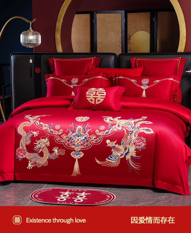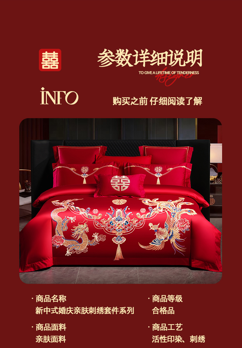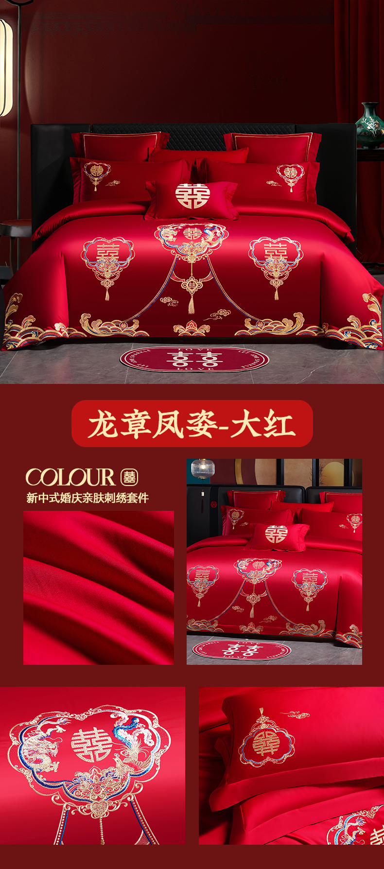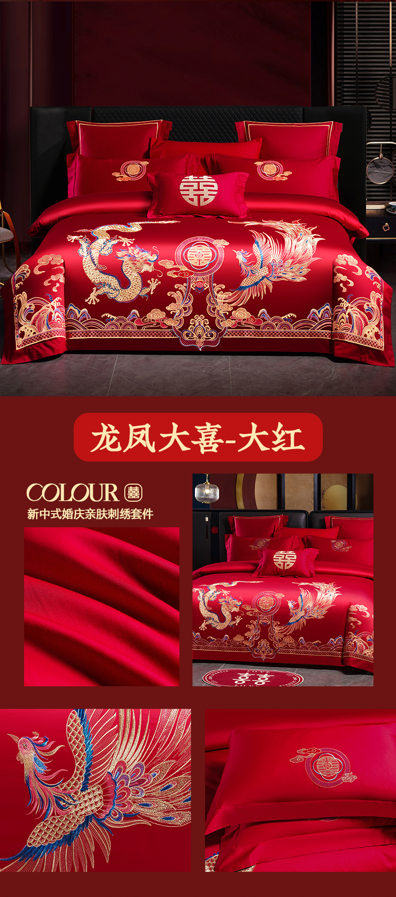 当前位置: 91家纺网 > 商品网购 > 床品套件 > 四件套 > 婚庆四件套 > 置顶家纺 2025新款新中式婚庆亲肤刺绣四件套 锦绣龙凤-大红
