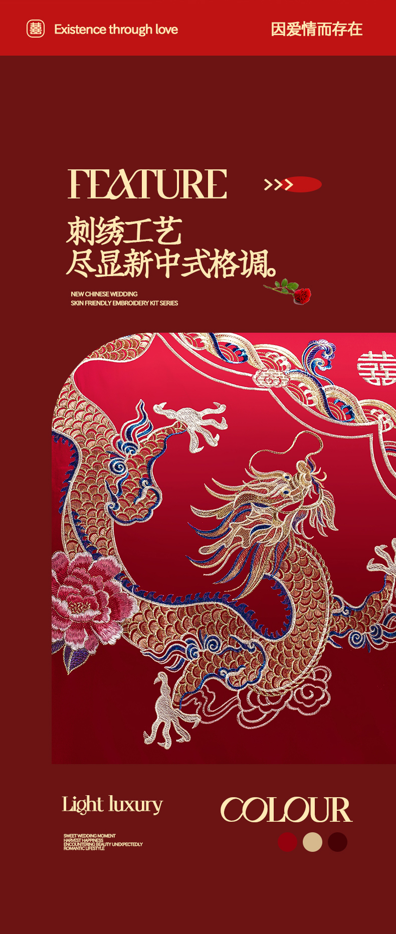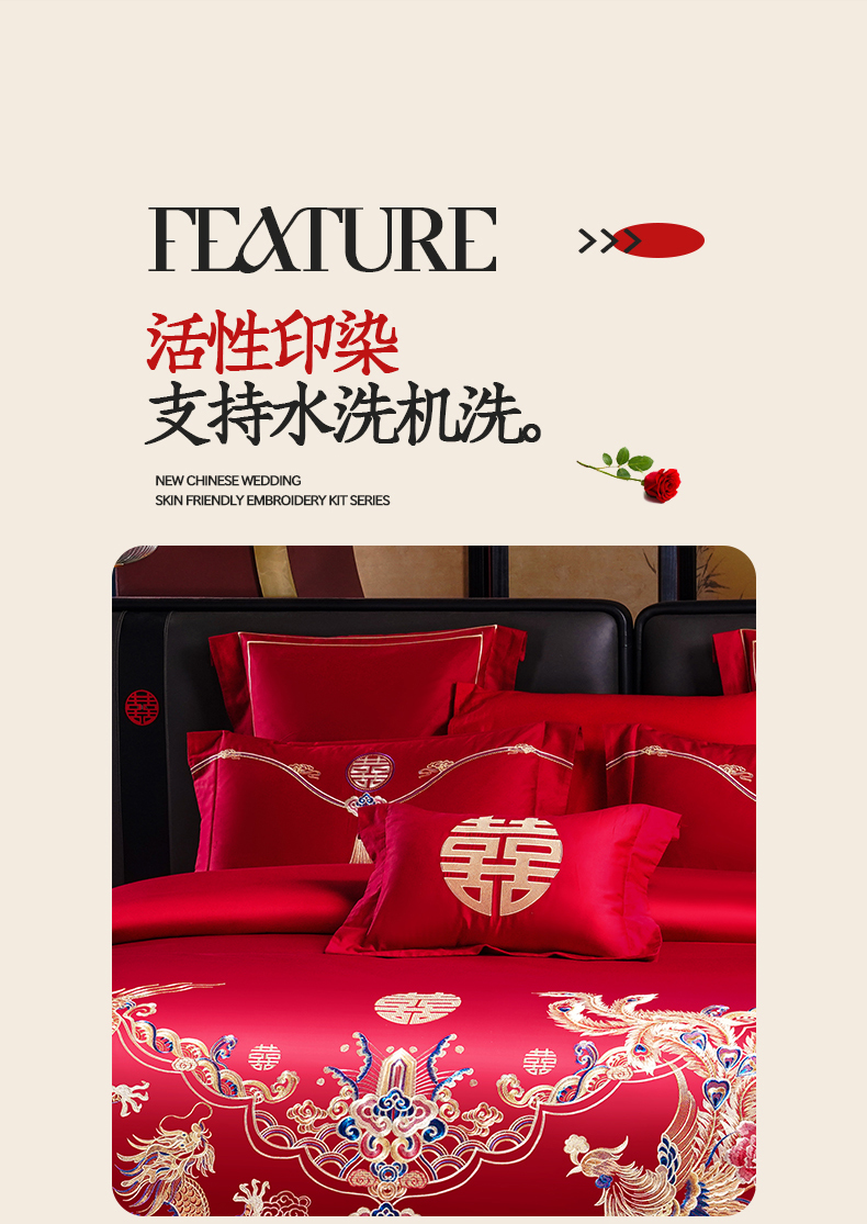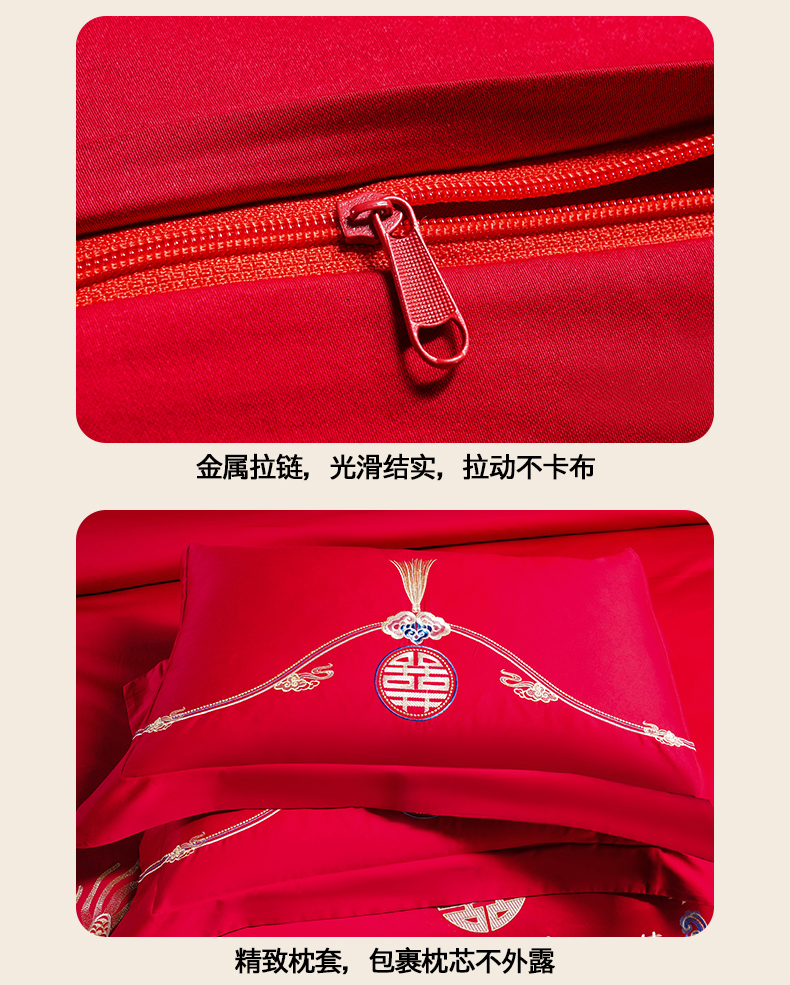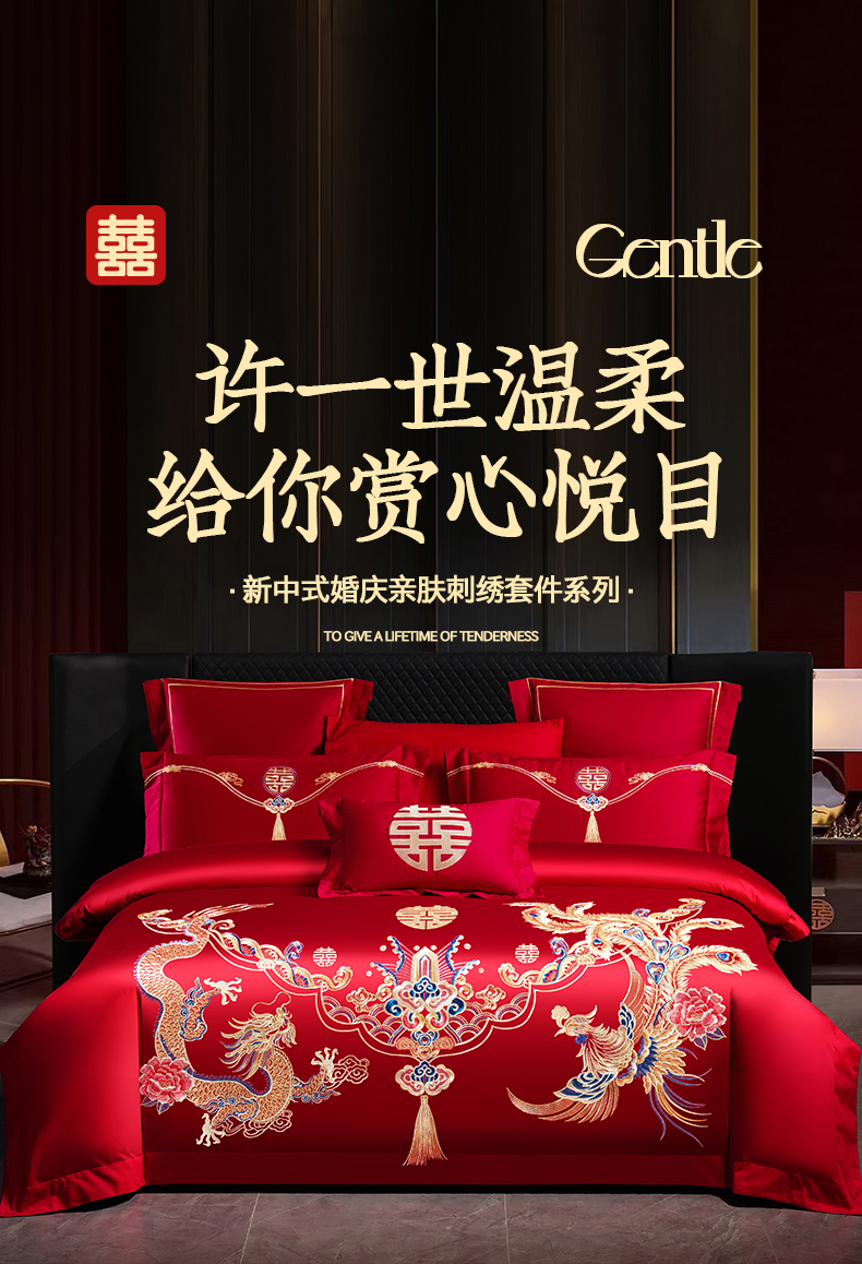 当前位置: 91家纺网 > 商品网购 > 床品套件 > 四件套 > 婚庆四件套 > 置顶家纺 2025新款新中式婚庆亲肤刺绣四件套 锦绣龙凤-大红